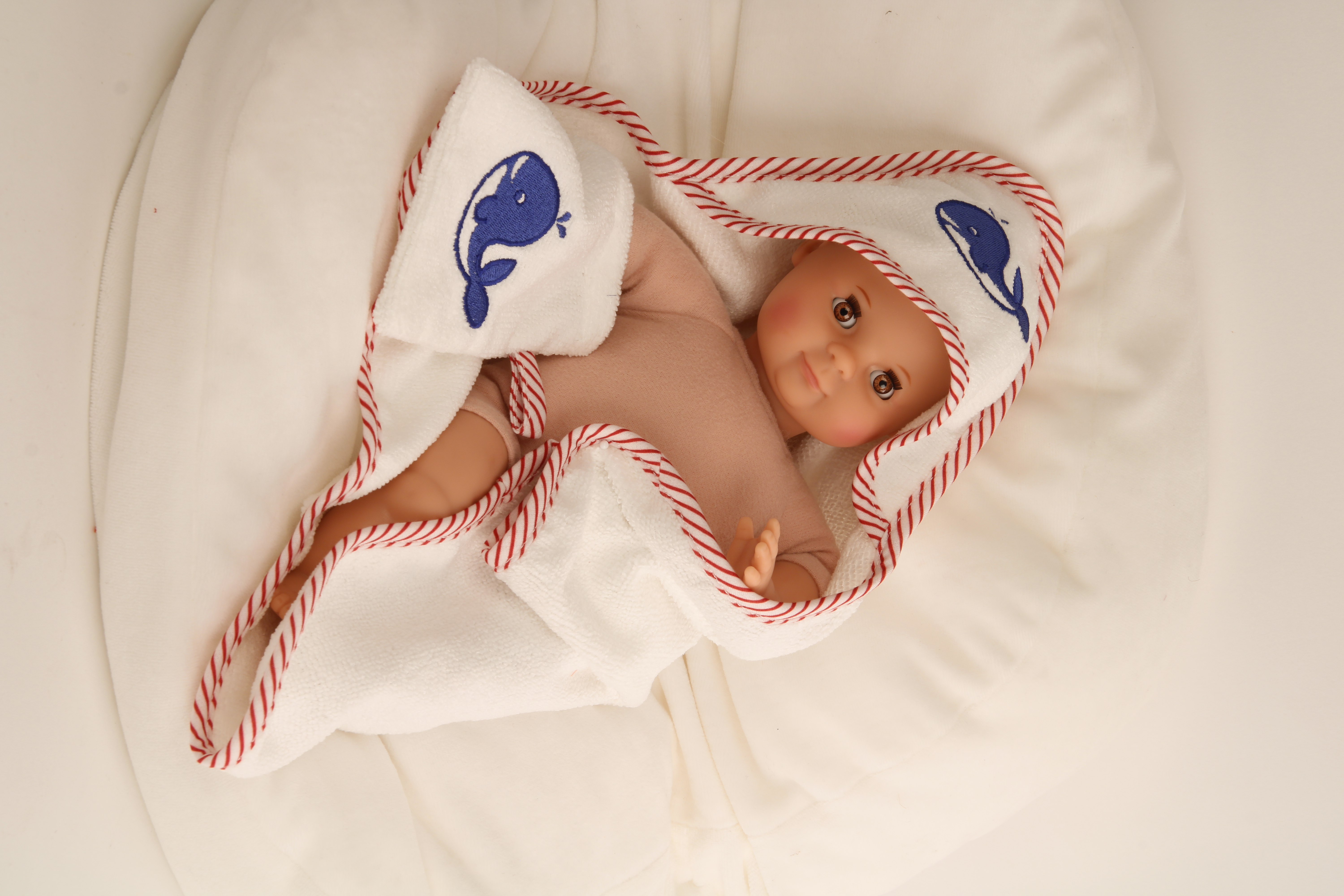 Badetuch und Waschlappen zu Puppe Schlummerle 32 cm in weiss/rot/blau