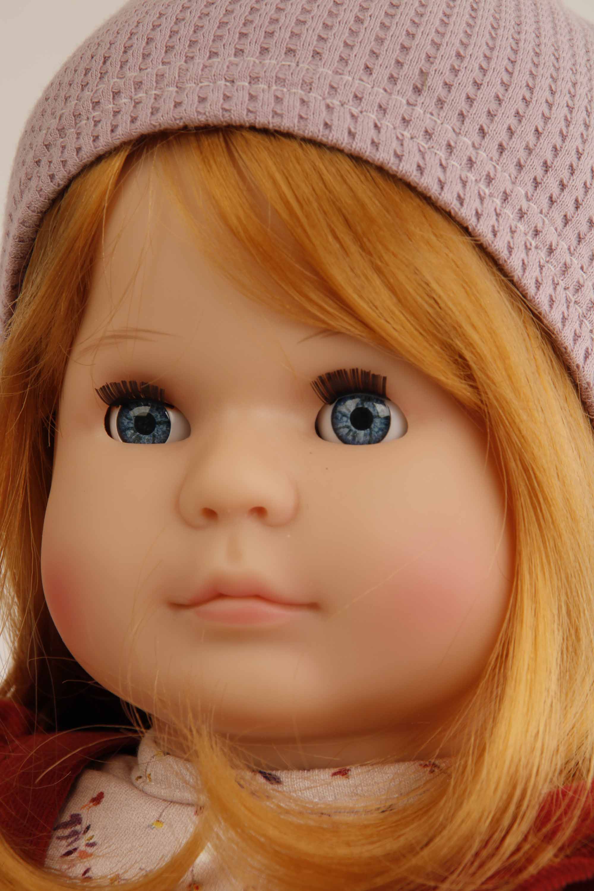 Puppe Hanni 45 cm rote Haare, blaue Schlafaugen, Blumenkleidung rot/rose/lila