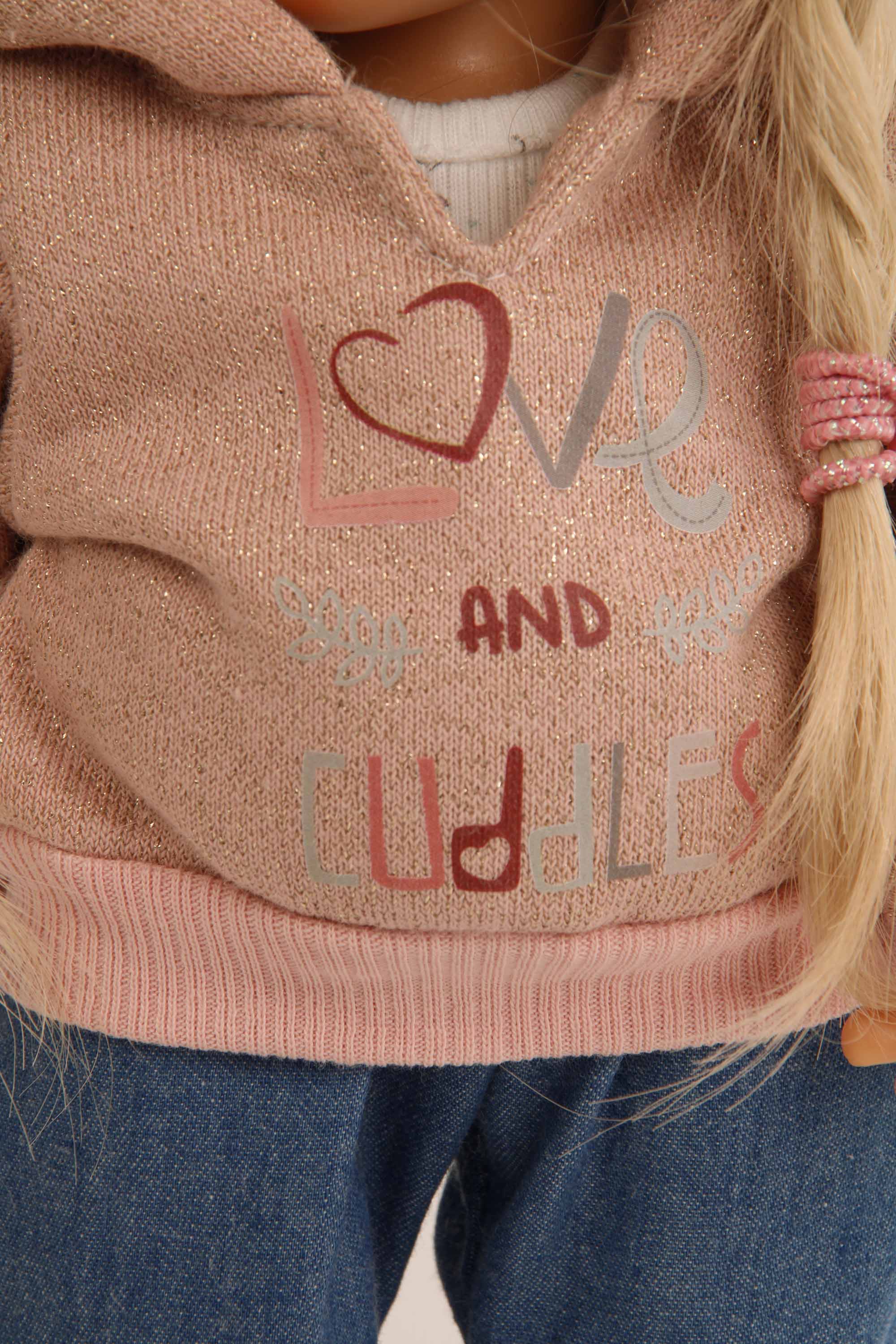 Puppe Müller-Wichtel Fiona 30 cm blonde Haare, Kleidung rose/Jeans