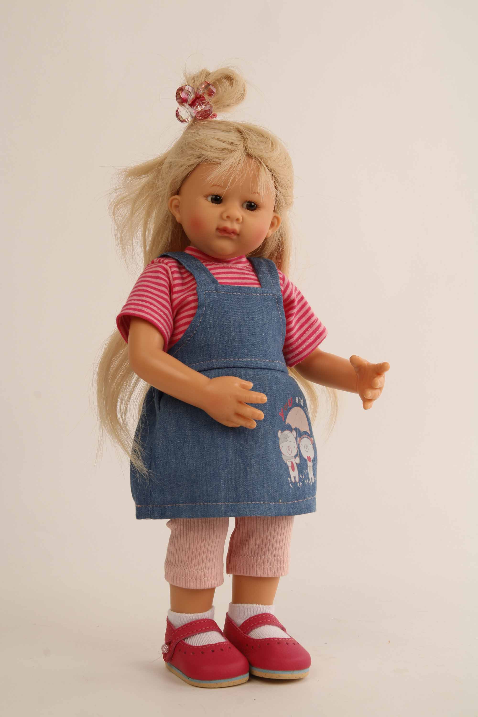 Puppe Müller-Wichtel Luna 35 cm blonde Haare, Jeanskleidung blau/rot/rosa
