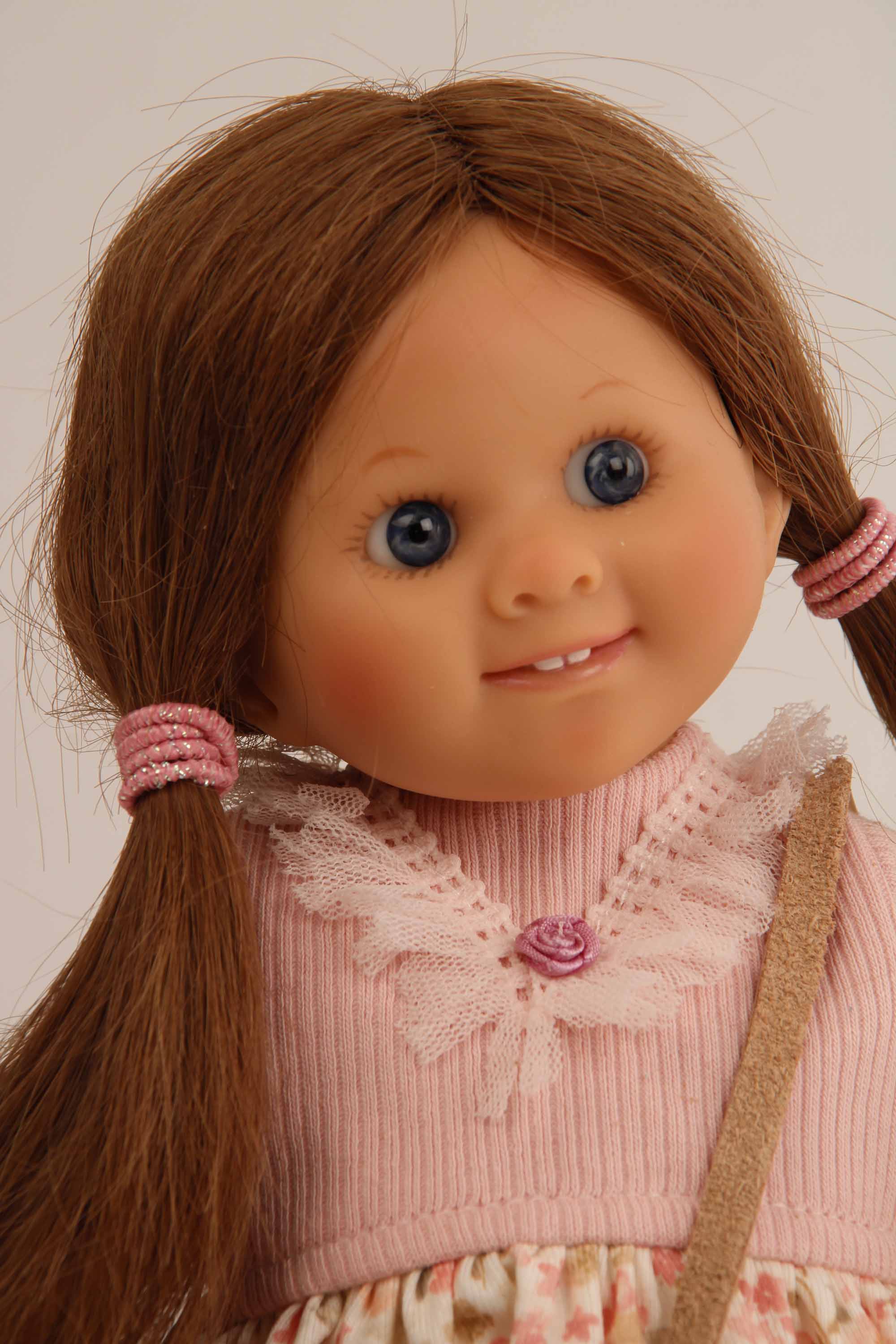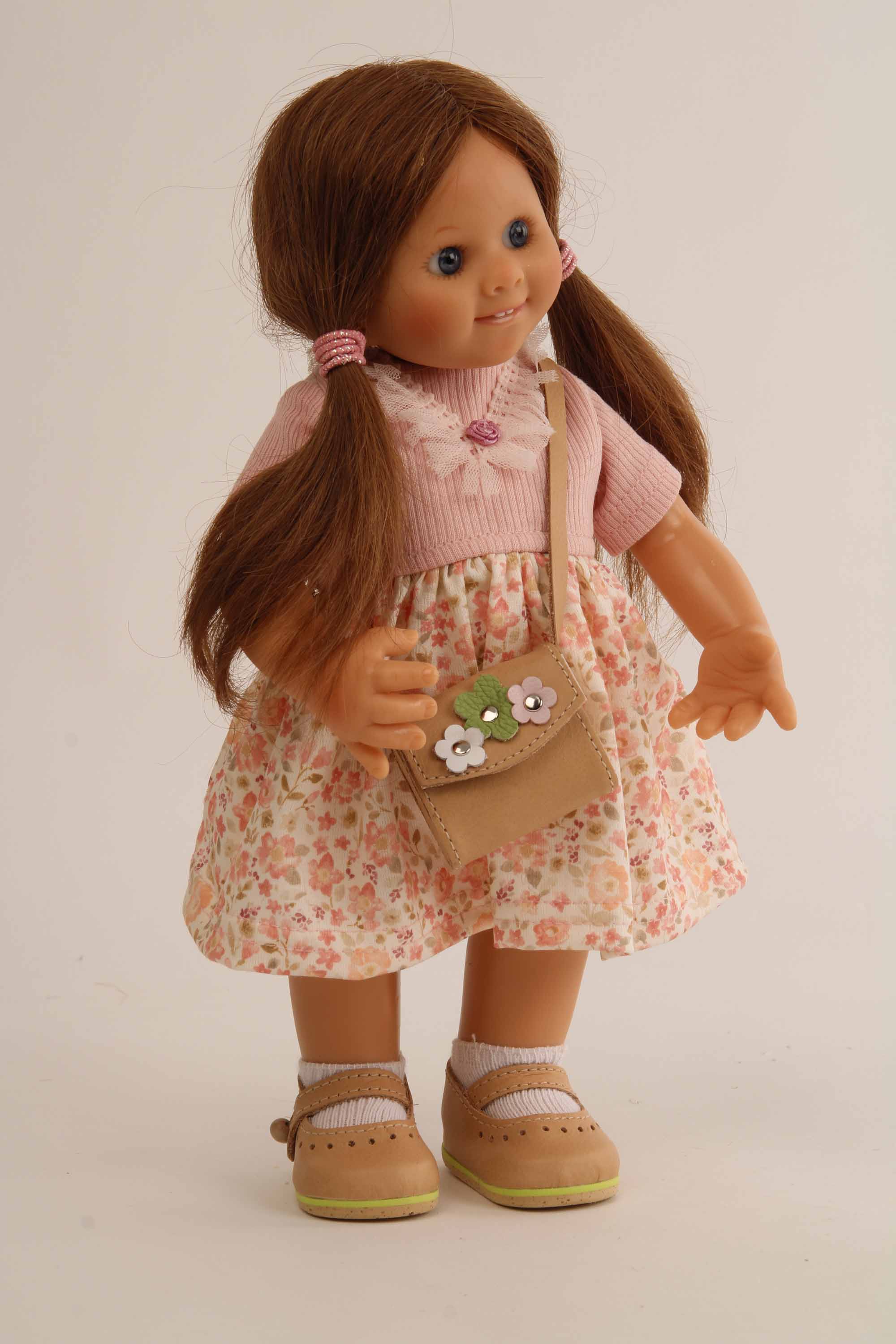 Puppe Müller-Wichtel Paula 30 cm braune Haare, Blumenkleid rose