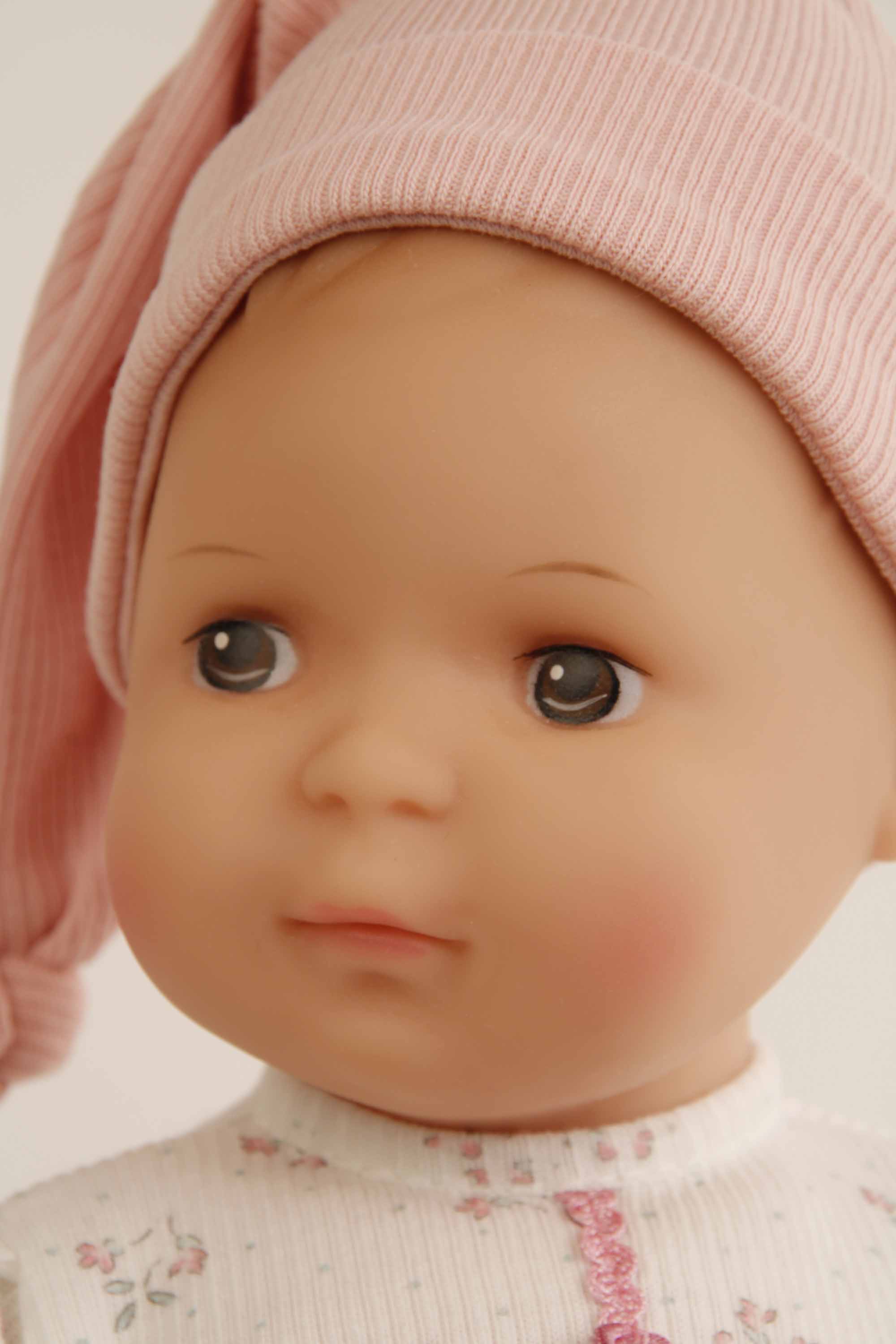 Puppe Schlenkerle 37 cm mit Malhaar und braunen Malaugen, Kleidung weiss/rose/aubergine