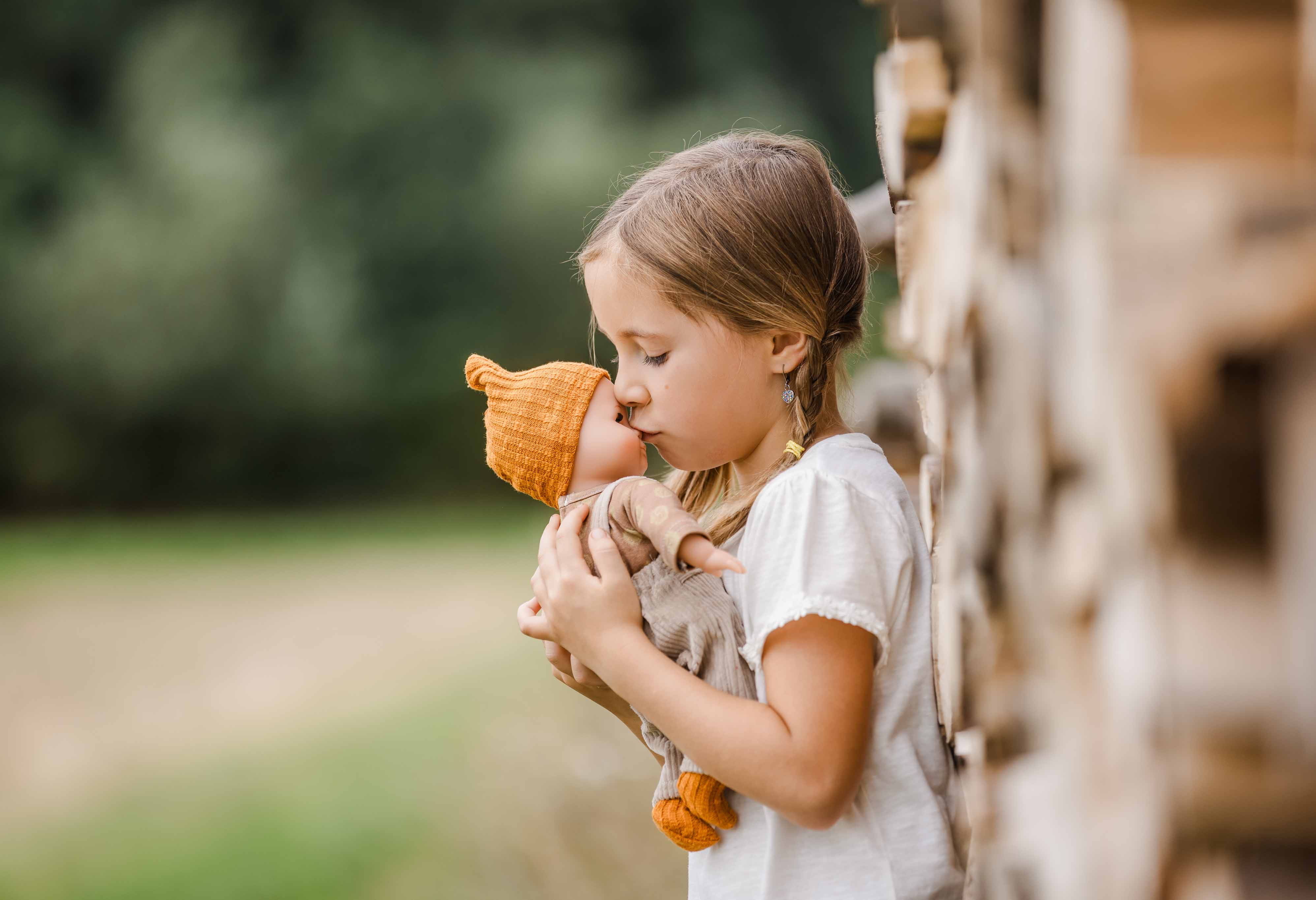 Mein erstes Schlummerle, die beliebteste und bekannteste Puppe, ohne Haare für die Kleinsten. Ein unverwechselbares Gesicht vereint Qualität und Spielwert und begeistert schon seit Generationen unsere Puppenmuttis.Die Puppe wird in unserer eigenen Puppenmanufaktur in Rauenstein/Thüringen hergestellt. Arme, Beine und Kopf sind aus Vinyl, sie hat lustige braune Schlafaugen und gemalte Haare. Das Schlummerle trägt eine rosenholzfarbige Feincordhose, eine beige Tunika mit Waldtieren bedruckt und eine beige Mütze aus Waffelpique. Die Kleidung ist von Hand bei 30 Grad waschbar. STICKEREI: Als besonderen Service bieten wir an, eine individuelle Widmung (z.B. Name und Geburtsdatum der Puppenmutti) mit einem kleinen Aufpreis auf den Puppenbauch zu sticken. Wenn Sie eine ganz persönliche Puppe für Ihr Kind möchten, dann geben Sie Ihre Wunschbestickung oben in die dafür vorgesehenen Felder ein. Achtung: Nicht geeignet für Kinder unter 36 Monaten, da Kleinteile verschluckt werden können.