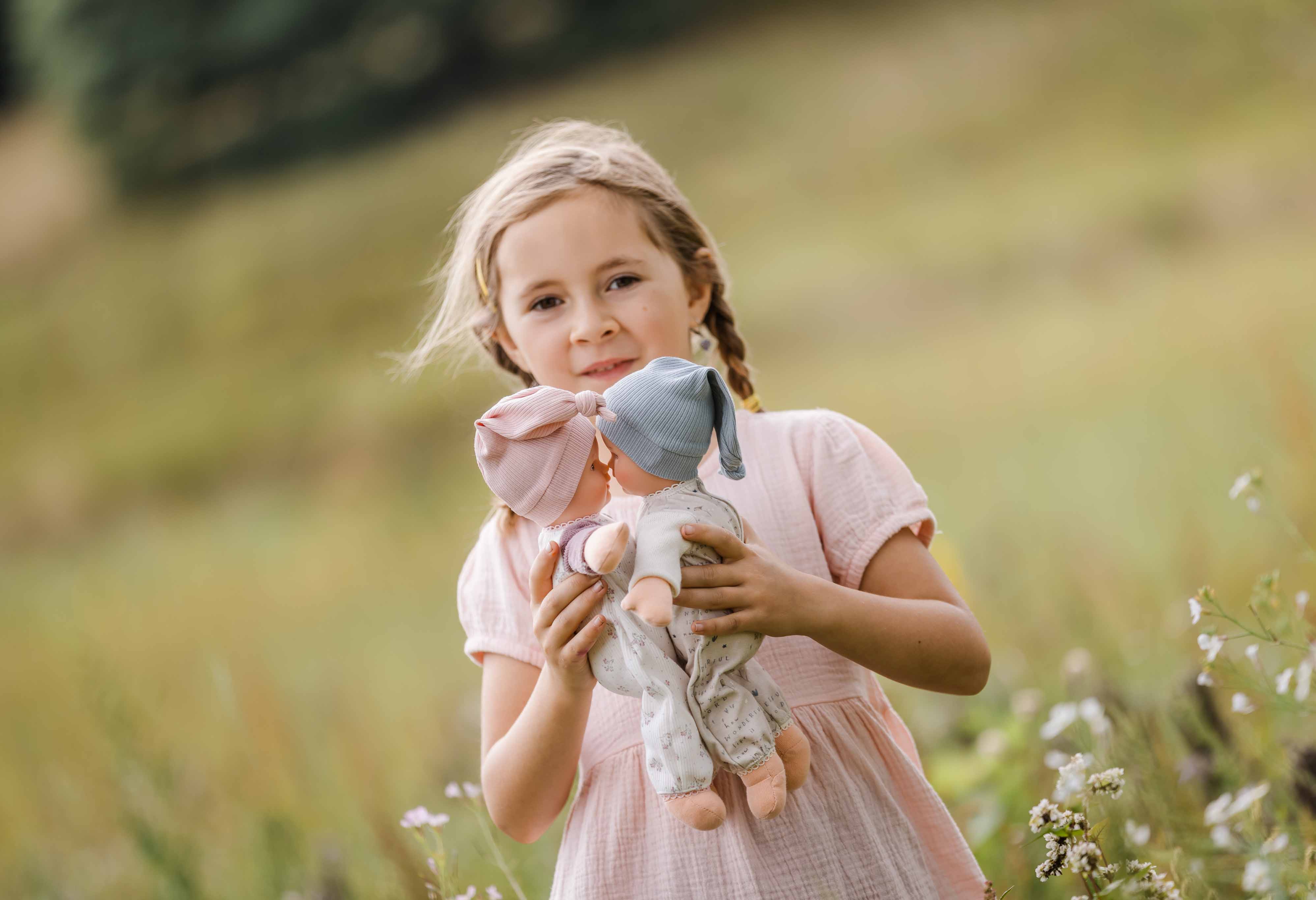 Schmuserle – Das perfekte Püppchen für unsere Kleinsten! Jedes Kind braucht einen treuen Begleiter zum Schmusen und Liebhaben. Unser Schmuserle ist genau das richtige Püppchen! Mit einem Kopf aus hochwertigem Vinyl, das mit liebevoll gemalten blauen Augen und Haaren versehen ist, und einem weichen Stoffkörper, bietet es den perfekten Komfort für kleine Hände.Hergestellt in unserer eigenen Puppenmanufaktur in Rauenstein/Thüringen, steht unser Schmuserle für Qualität und Handwerkskunst. Die süße Spielkleidung mit fröhlichem Erdbeerdruck lässt sich kinderleicht an- und ausziehen und ist bei 30° C per Hand waschbar – ideal für kleine Abenteurer! Geeignet für Kinder ab 9 Monaten, wird dieses Püppchen schnell zum besten Freund und treuen Begleiter in jedem Spielzimmer. Schenken Sie Ihrem Kind die Freude am Schmusen und Spielen mit unserem Schmuserle!
