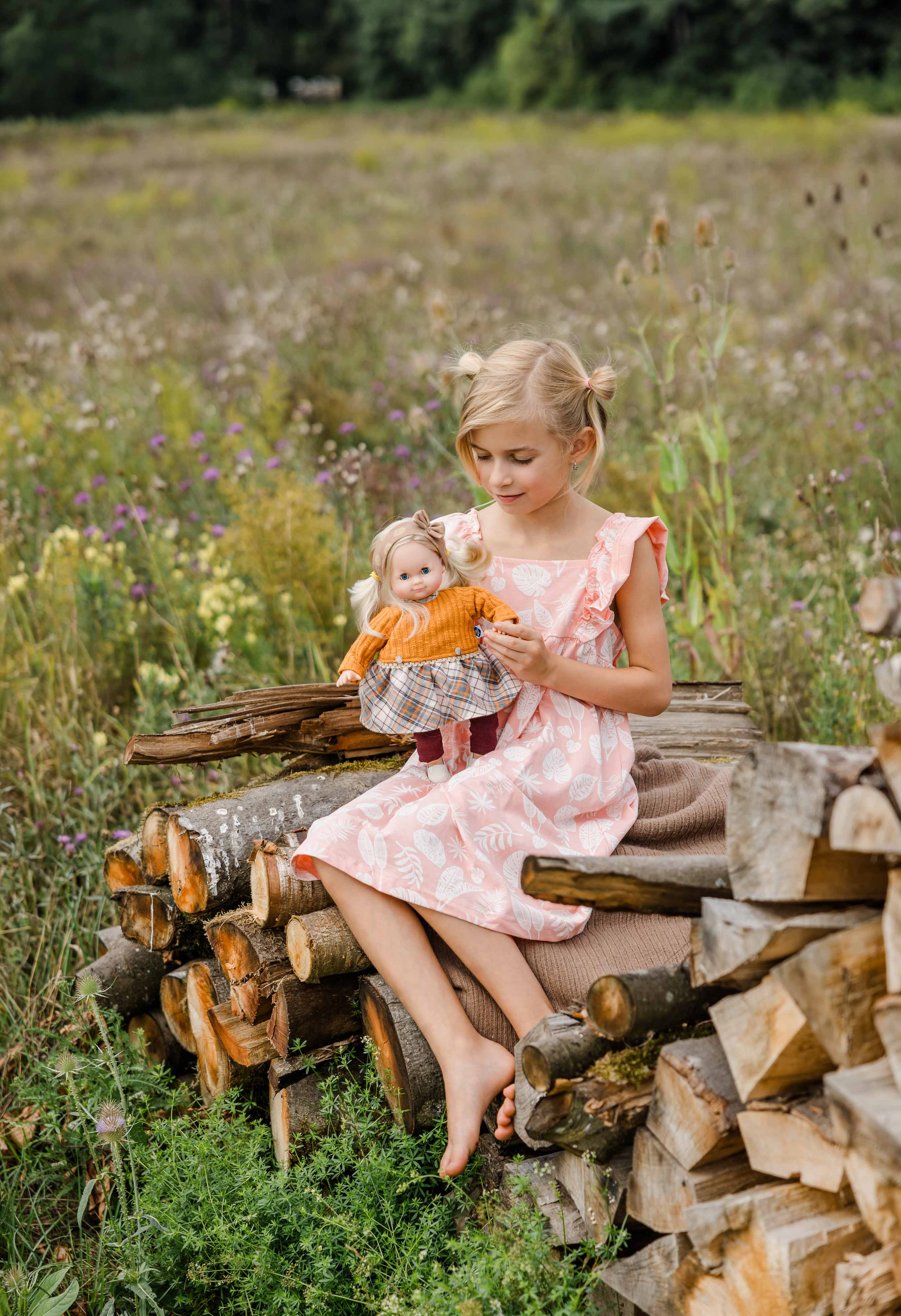 Kleidung bestehend aus beiger Strickhose, Blumenkleid mit Strickärmeln und passendem Haarband. Die Steckschuhe 0037092 können extra dazu bestellt werden. Die Kleidung wird komplett in Handarbeit in unserer Puppenmanufaktur in Rauenstein /Thüringen gefertigt. Diese Kleidung kann per Hand bei 30 Grad gewaschen werden.Die Puppe gehört nicht zum Lieferumfang. Achtung: nicht geeignet für Kinder unter 36 Monate, da Kleinteile sich lösen können und verschluckt werden können.