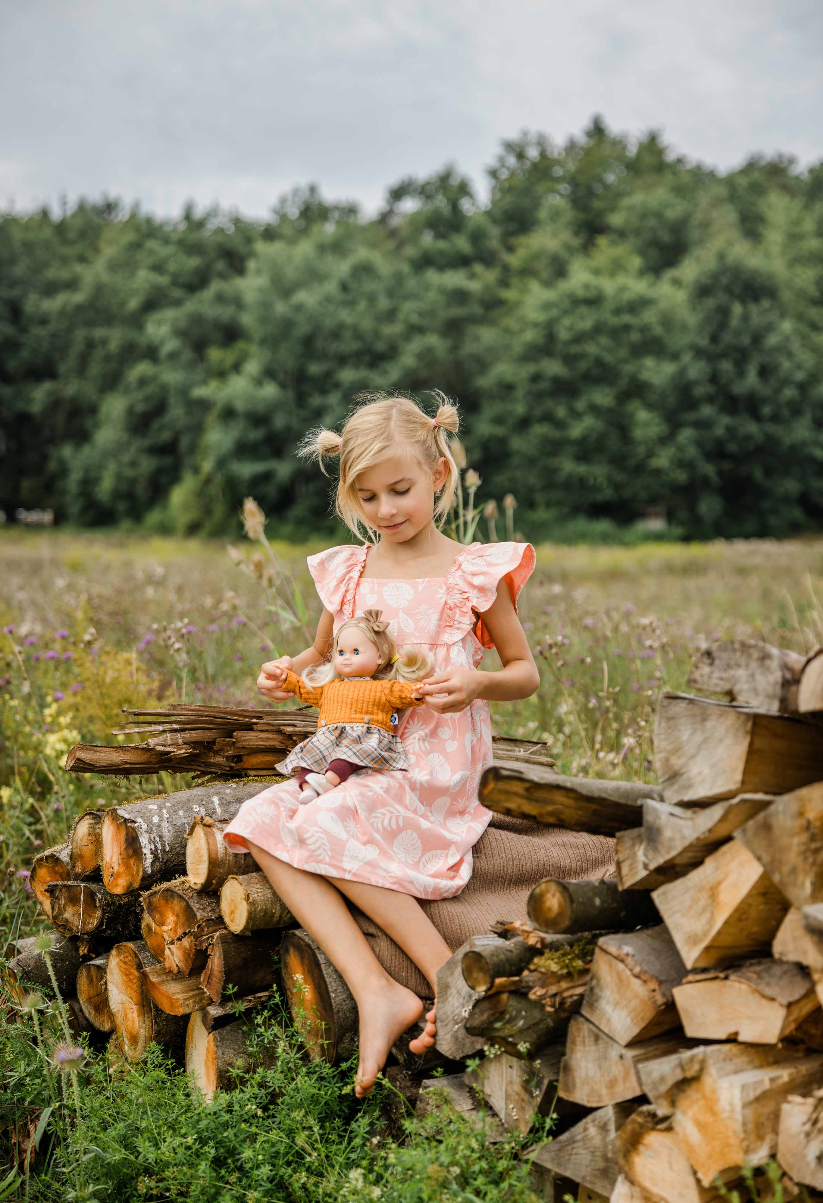 Kleidung bestehend aus Strick-Strumpfhose in rot, einer mit Pilzen und Schnecken bedruckten Tunika, Mütze und Söckchen rostfarben. Die Kleidung wird komplett in Handarbeit in unserer Puppenmanufaktur in Rauenstein /Thüringen gefertigt. Diese Kleidung kann per Hand bei 30 Grad gewaschen werden. Die Puppe gehört nicht zum Lieferumfang. Achtung: nicht geeignet für Kinder unter 36 Monate, da Kleinteile sich lösen können und verschluckt werden können.