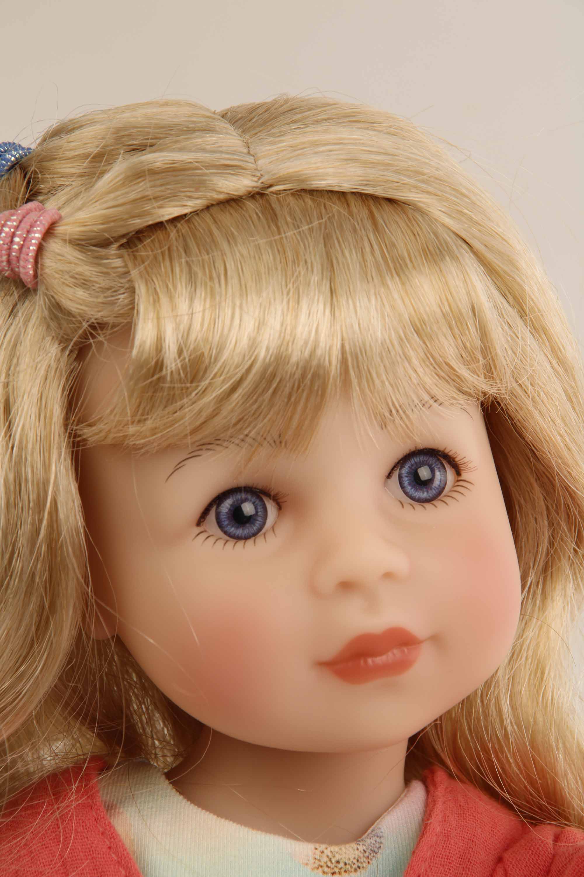 Stehpuppe Yella 46 cm blonde Haare, Sommerkleidung bunt