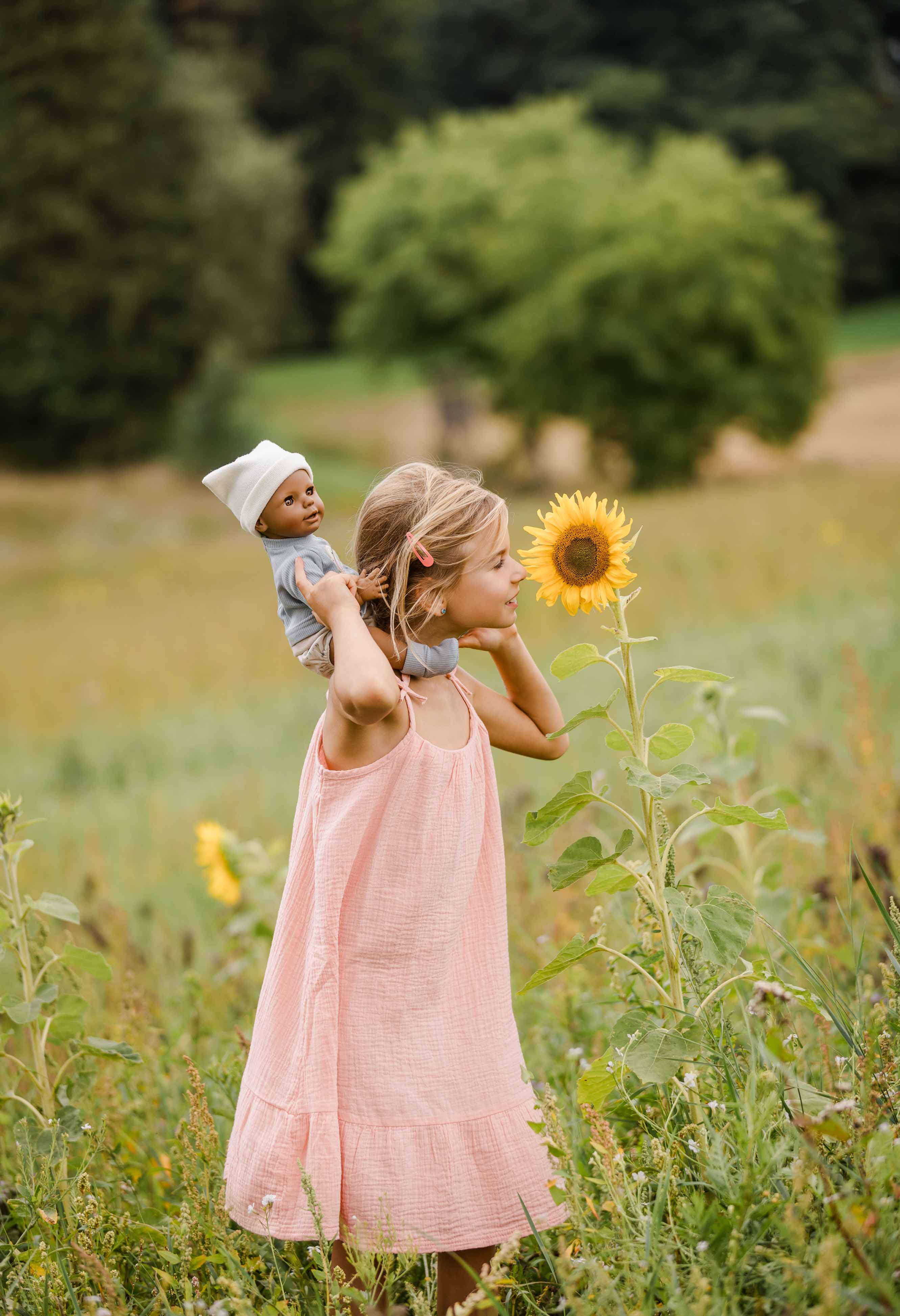 Finn ist nicht nur eine Puppe, sondern ein echter Spielkamerad, der wie ihre großen Geschwister gefüttert werden kann und sogar aufs Töpfchen geht! Er ist eine Geschlechtspuppe. Für unterwegs hat sie alles dabei, was sie braucht: eine Windel und einen Schnuller, um Trost zu spenden.Hergestellt aus hochwertigem dunklen Vollvinyl, begeistert Finn mit funkelnden braunen Schlafaugen und einem charmanten, gemalten Haar. Im Set enthalten sind die Puppe, eine Flasche und ein Schnuller – alles, was Ihr Kind für fantasievolles Spielen benötigt. Finn ist stolz darauf, „Made in Germany“ zu sein und wird in unserer Manufaktur in Rauenstein mit viel Liebe zum Detail gefertigt. Er trägt eine moderne Spielkleidung in den sanften Farben Hellblau und Creme, die bei 30 Grad per Hand waschbar ist. Bitte beachten Sie, dass die Puppe nicht wasserdicht ist und daher nicht gebadet werden kann.