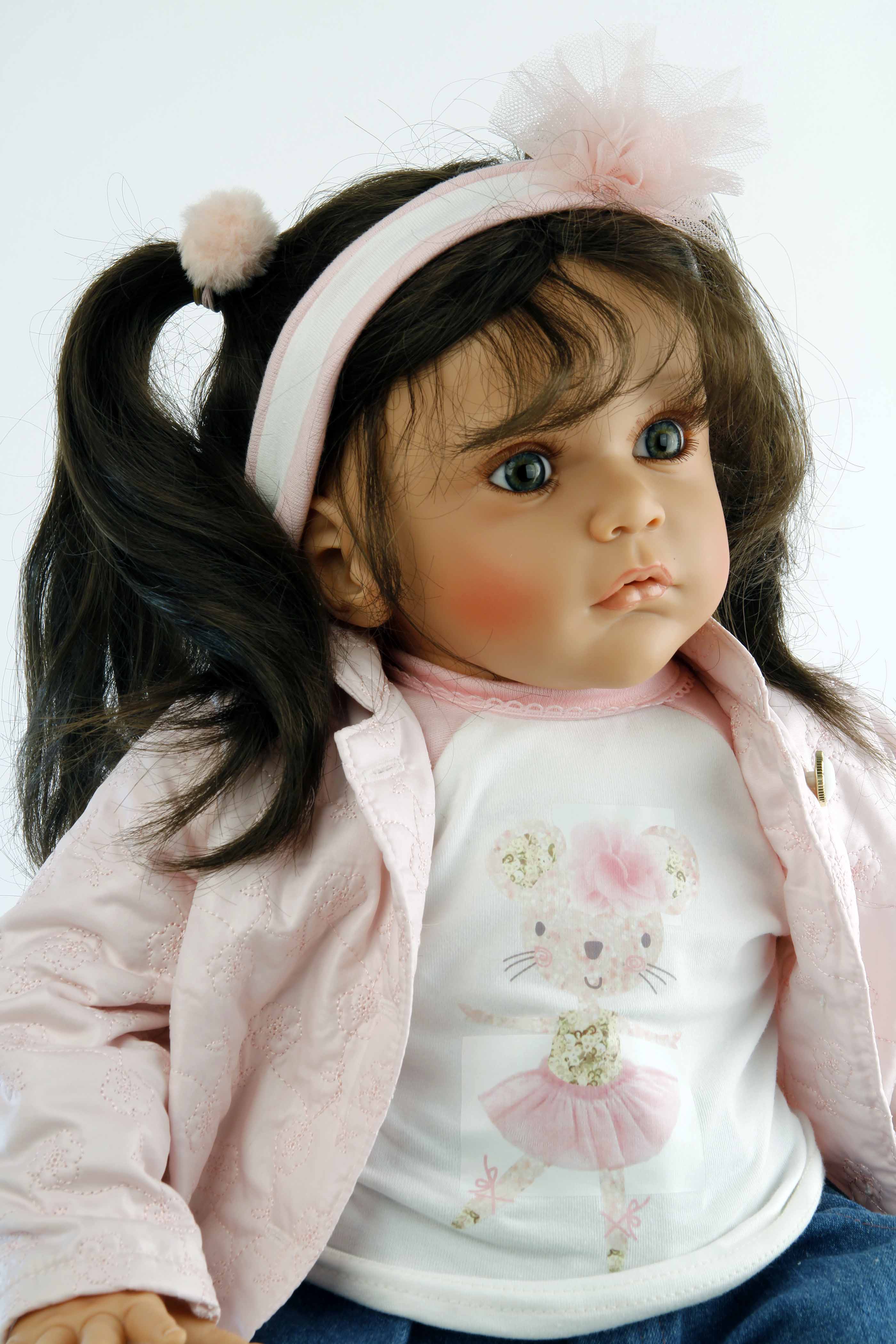 Puppe Mara 60 cm von Gudrun Legler, braune Haare, Kleidung Glitterlook