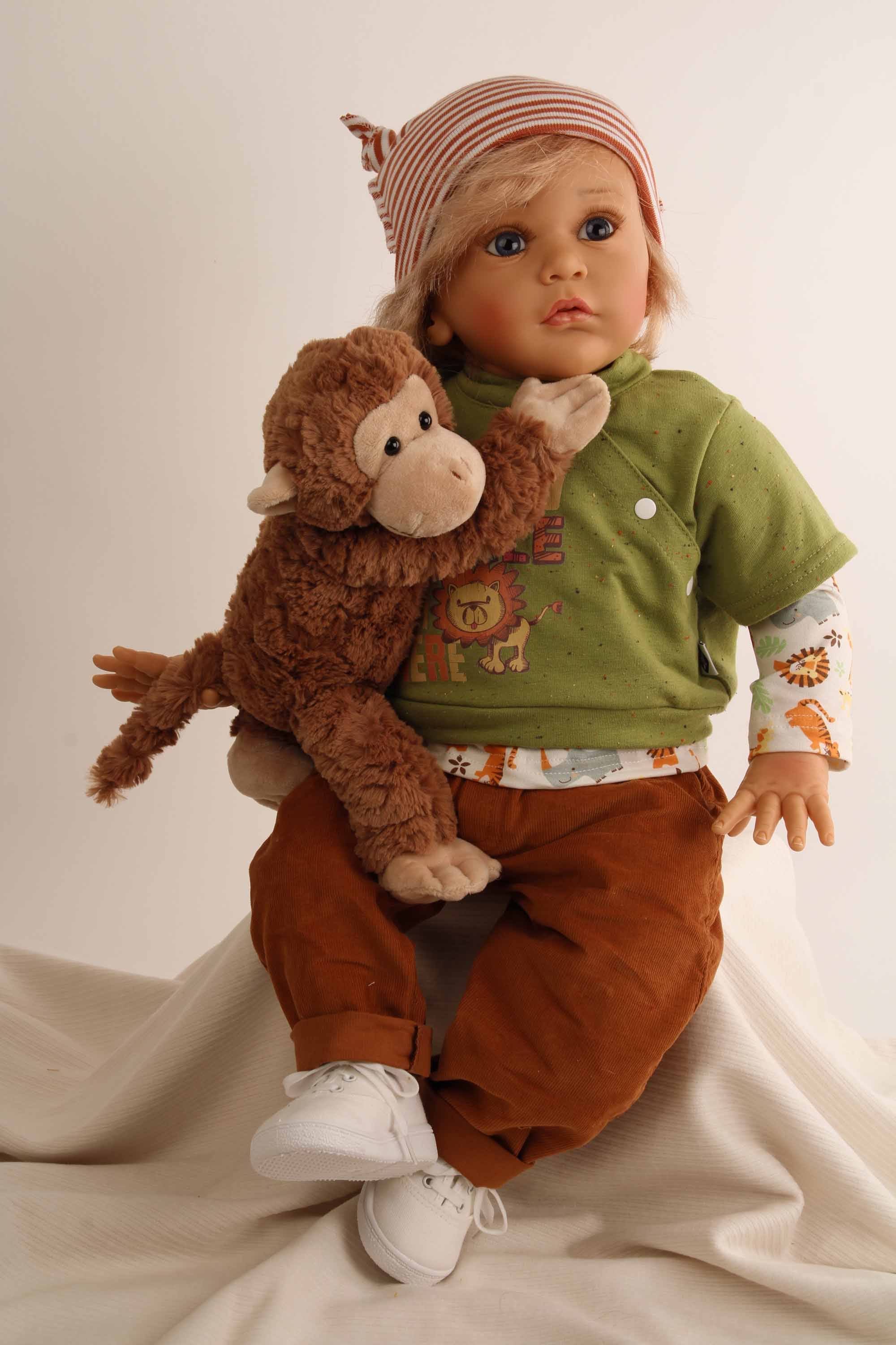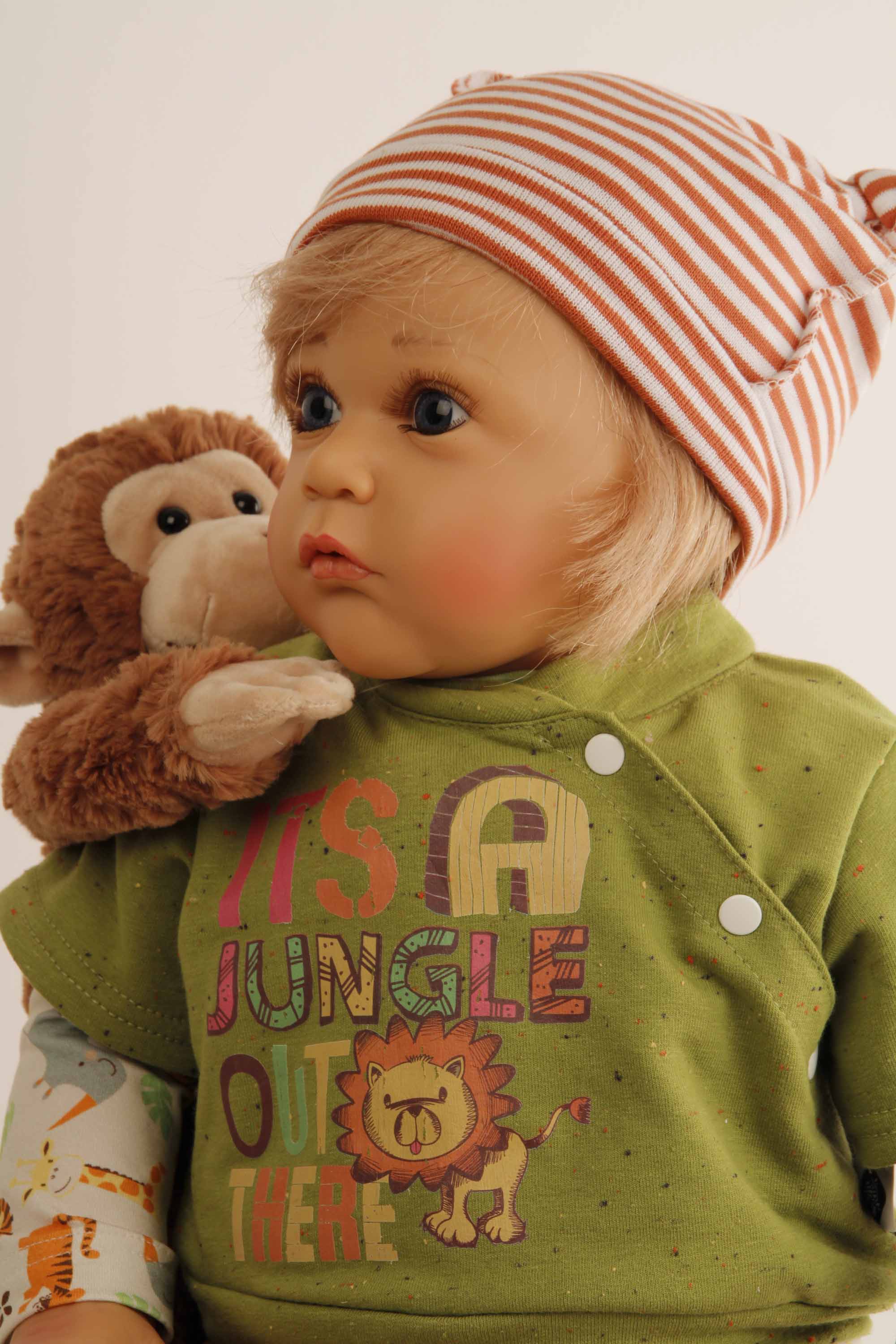 Produktinformationen "Puppe Aaron 60 cm von Gudrun Legler, blonde Haare, Kleidung Dschungel"