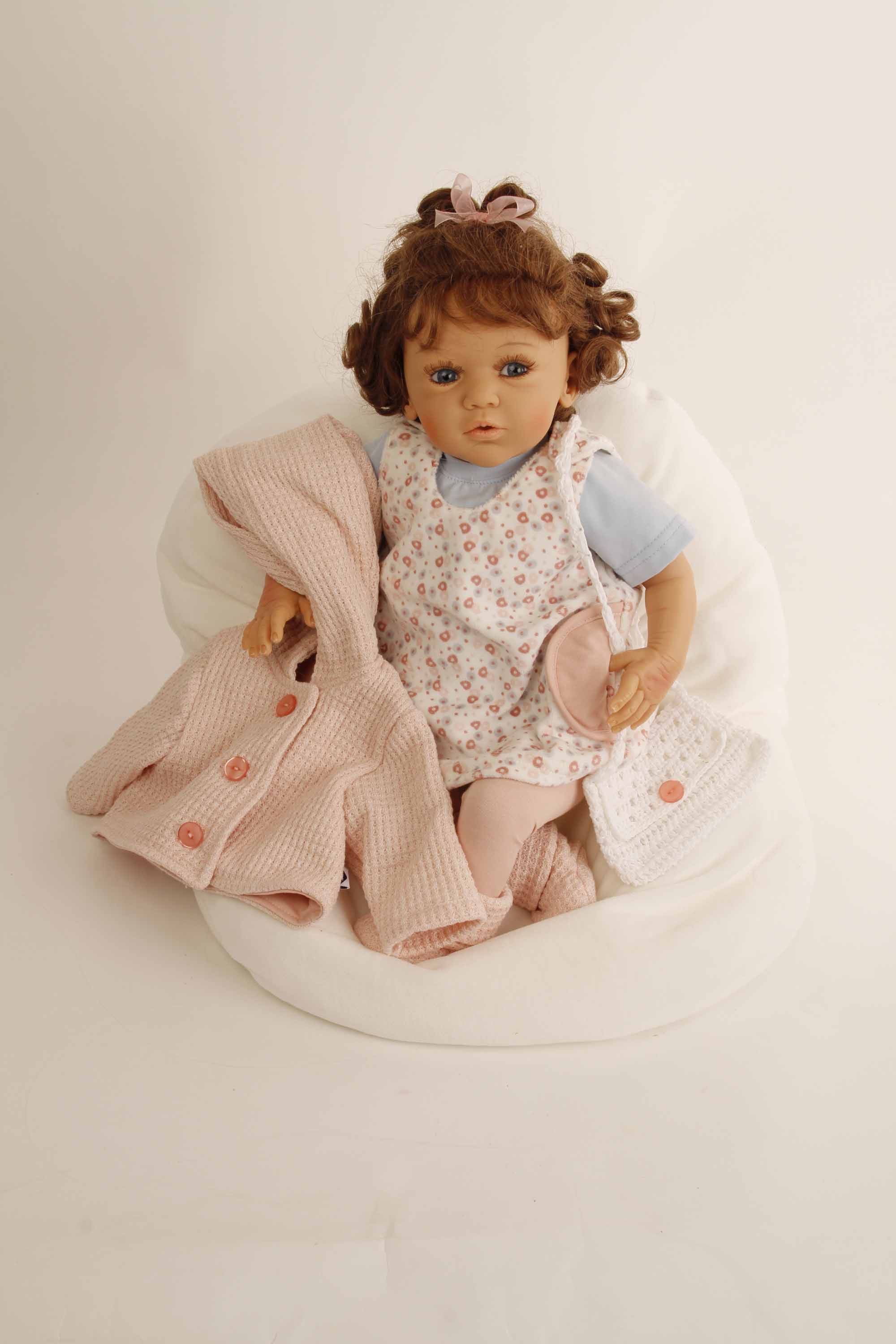 Produktinformationen "Puppe Rosalie 50 cm von Gudrun Legler, braune Haare, Babykleidung rose/weiss/blau"