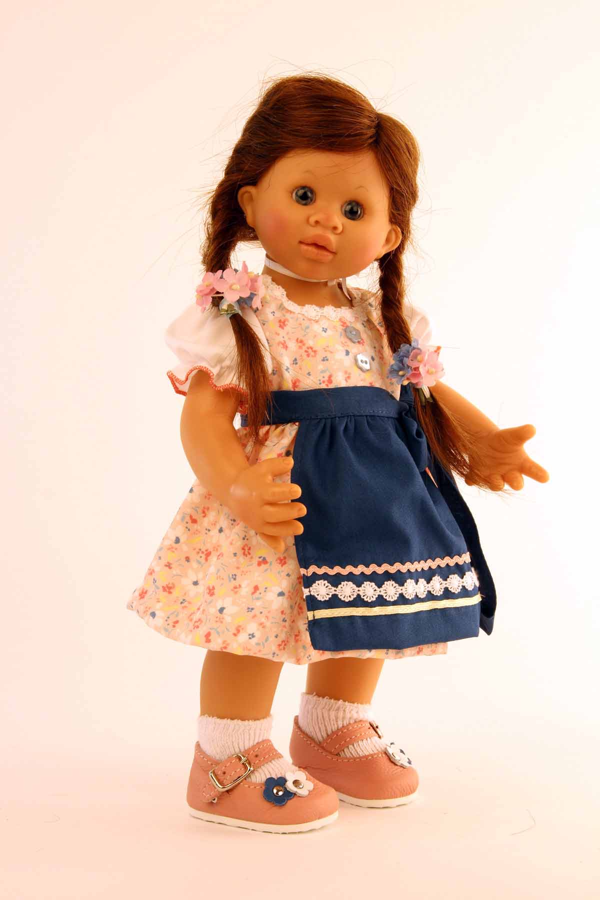 Produktinformationen "Puppe Müller-Wichtel Lili Gr.. 30, braune Haare, im Dirndl rose/blau"