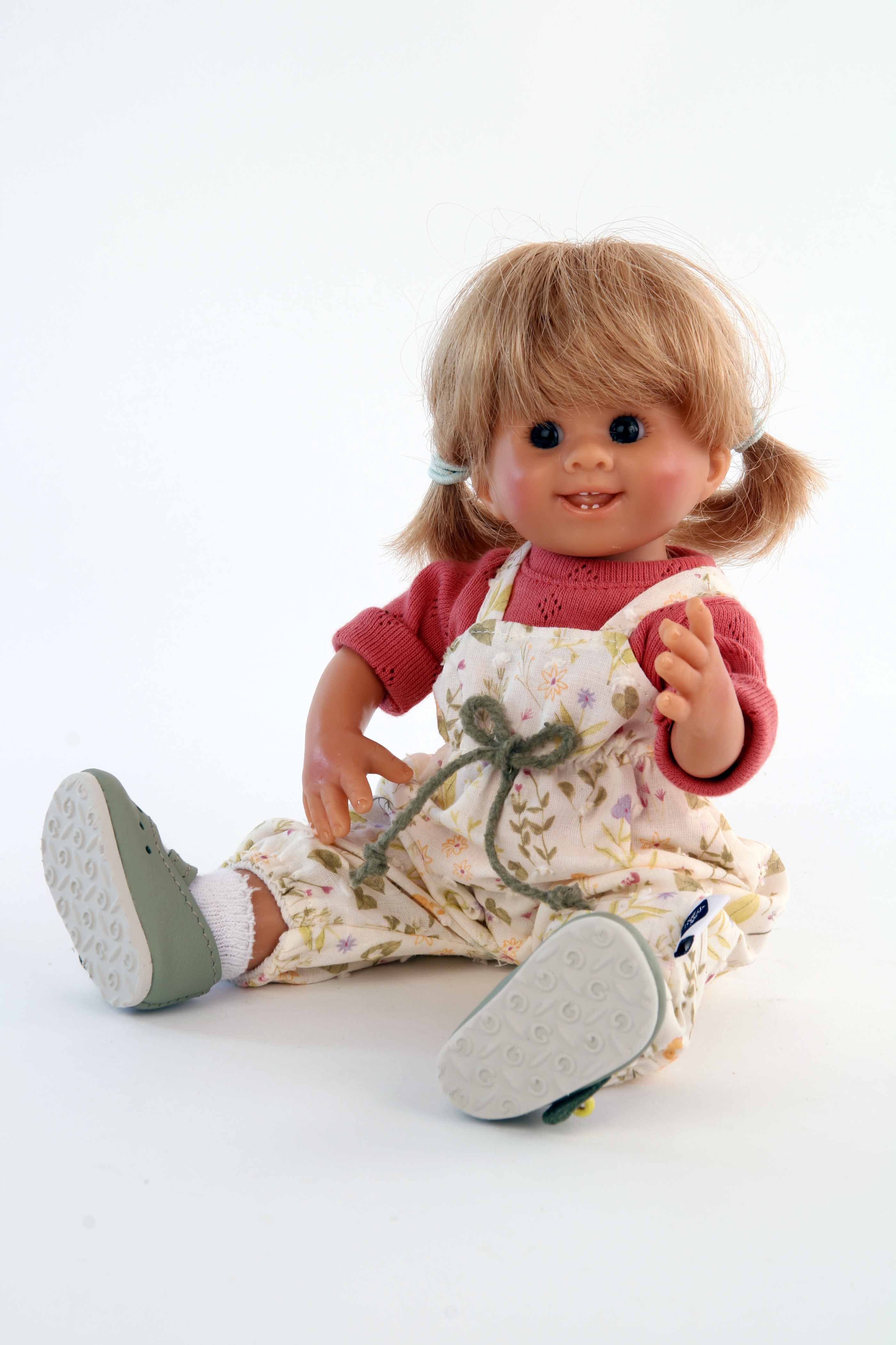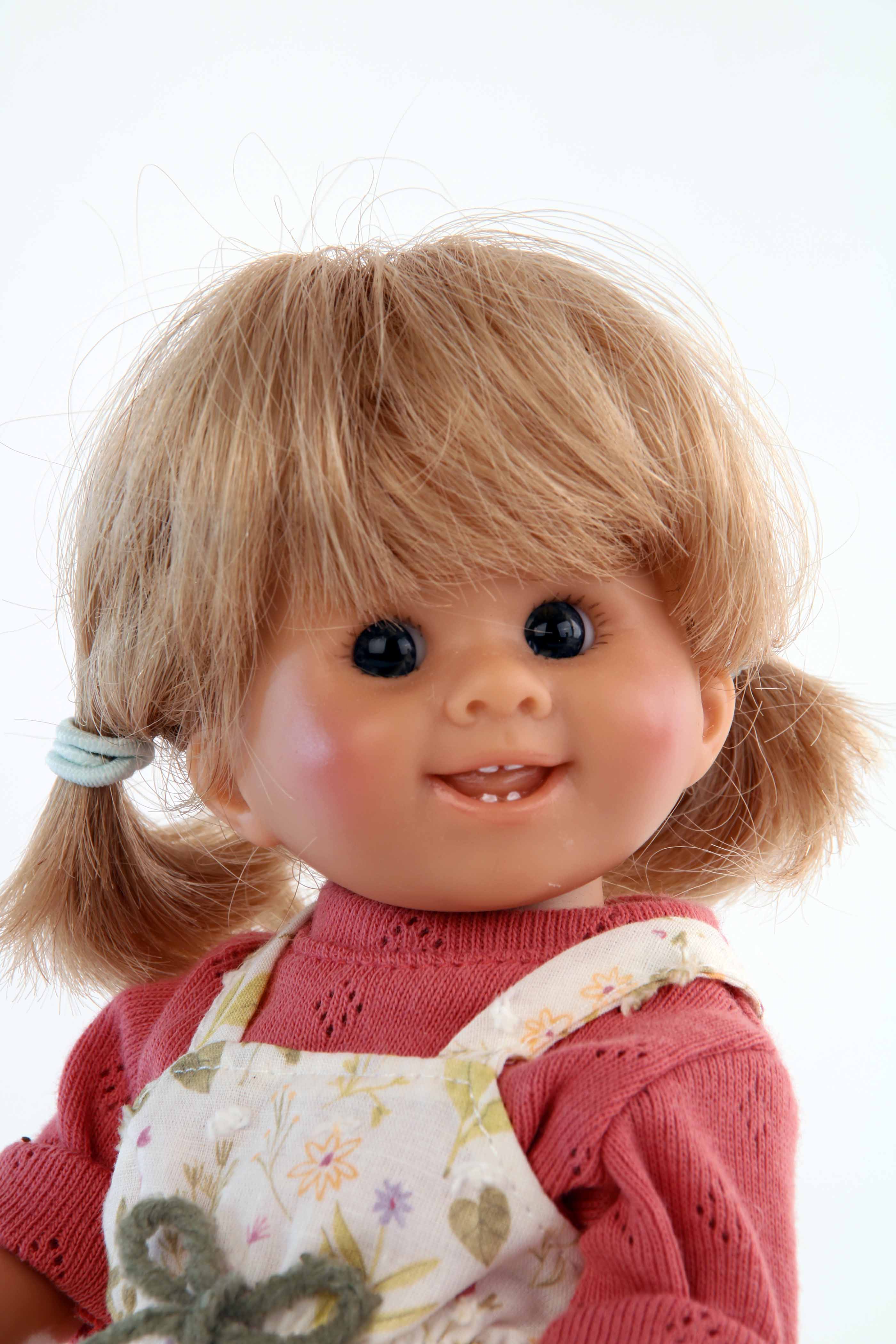 Puppe Müller-Wichtel Ida 25 cm blonde Haare, Blumenoverall