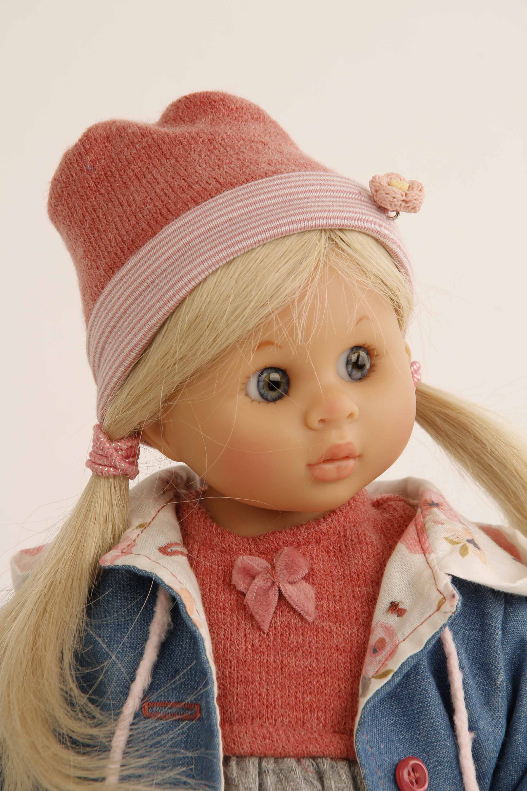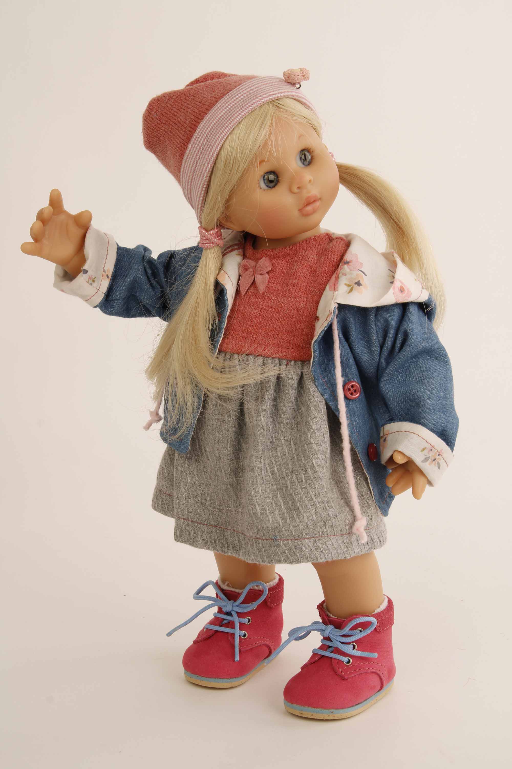 Puppe Müller-Wichtel Lotta 30 cm blonde Haare, Kleidung grau/rot/blau