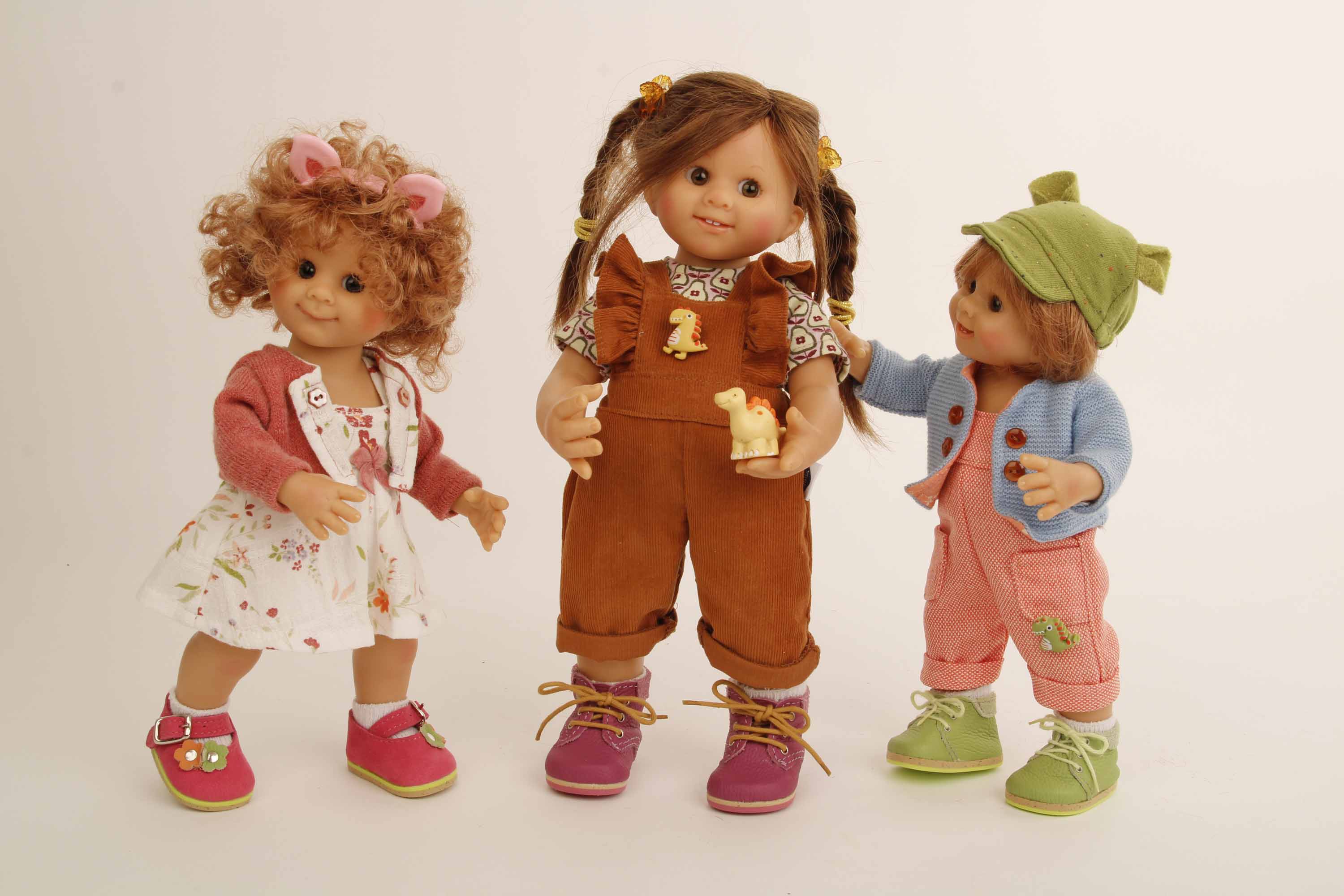 Puppe Müller-Wichtel Paula 30 cm braune Haare, Kleidung Dino