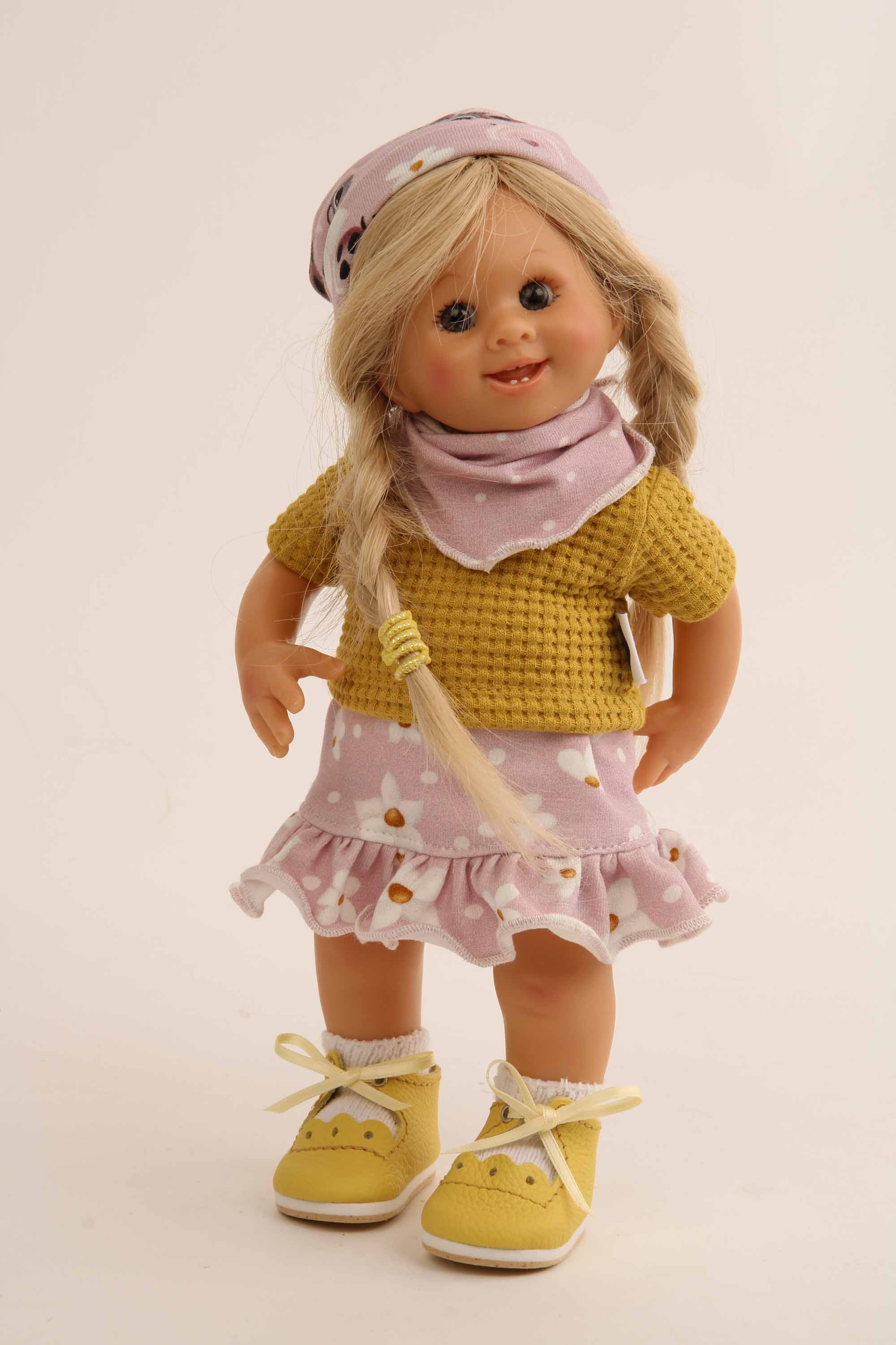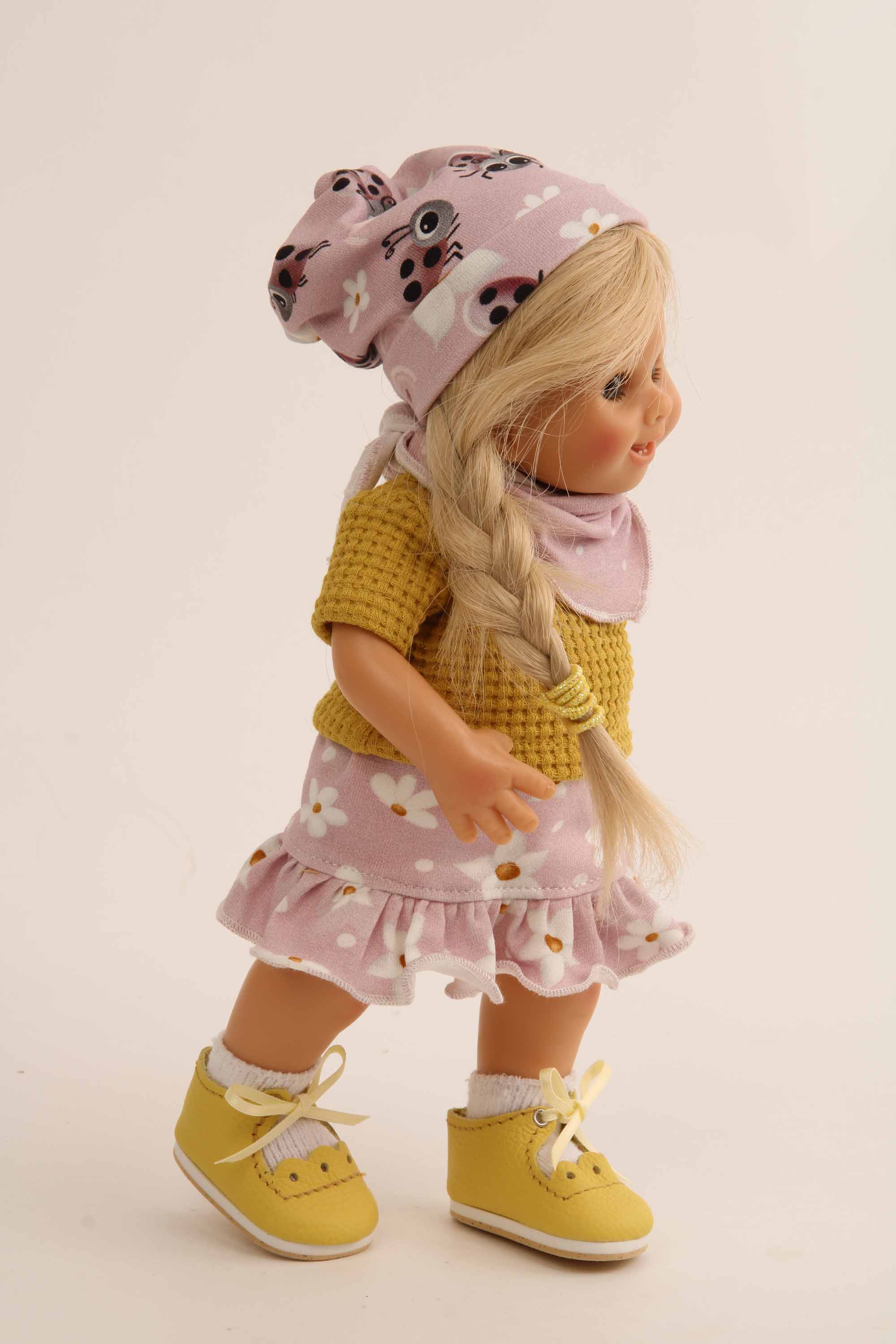 Produktinformationen "Puppe Müller-Wichtel Ida 25 cm blonde Haare, Blumenkleidung gelb/rose"