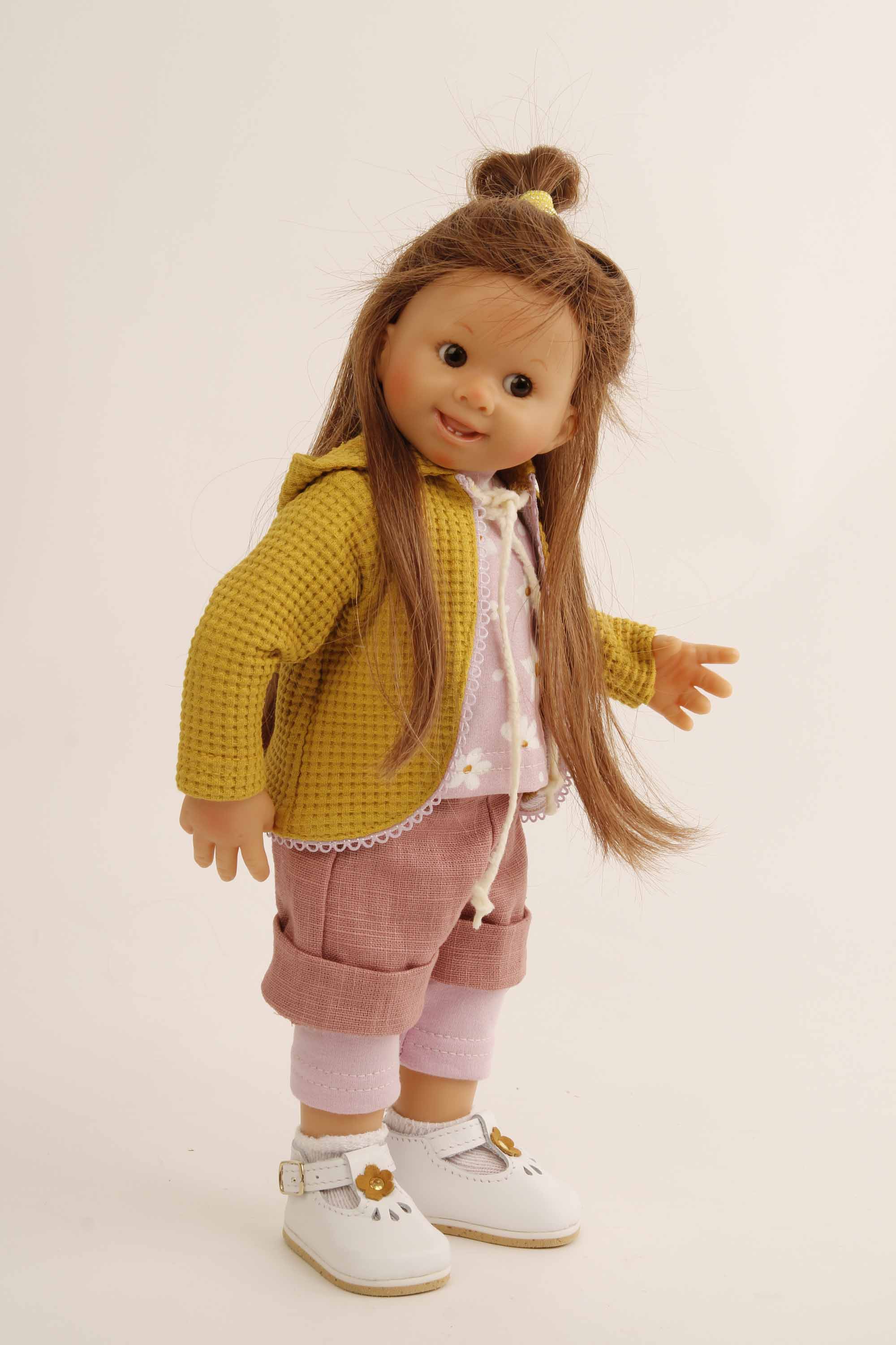 Puppe Müller-Wichtel Bea 35 cm braune Haare, Kleidung rosa/gelb/rot