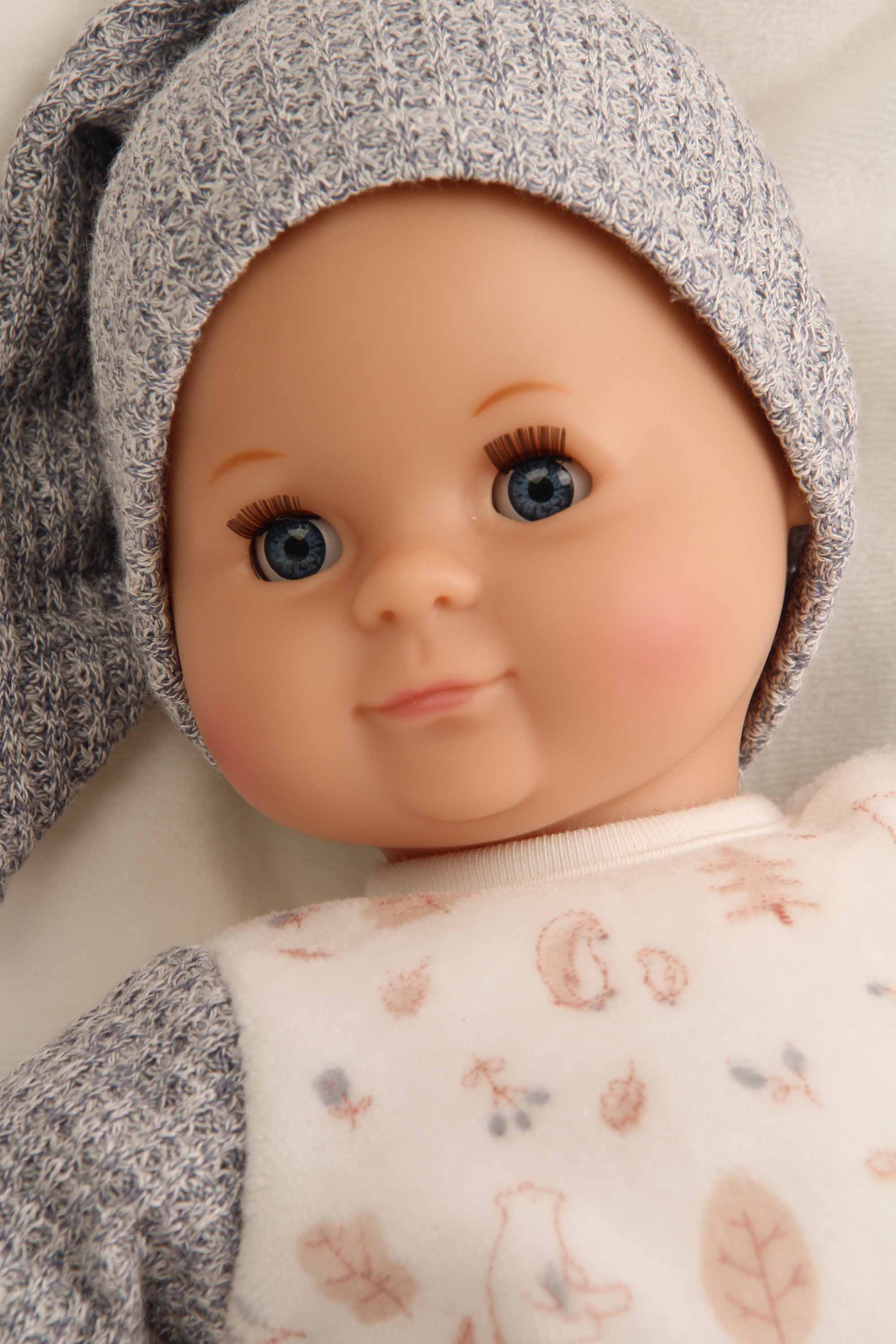 Mein erstes Schlummerle, die beliebteste und bekannteste Puppe, ohne Haare für die Kleinsten. Ein unverwechselbares Gesicht vereint Qualität und Spielwert und begeistert schon seit Generationen unsere Puppenmuttis.Die Puppe wird in unserer eigenen Puppenmanufaktur in Rauenstein/Thüringen hergestellt. Arme, Beine und Kopf sind aus Vinyl, sie hat lustige blaue Schlafaugen und gemalte Haare. Das Schlummerle trägt einen Nicky-Overall in weiß/blau/rose und hat eine blaue Strickmütze auf. Die Kleidung ist von Hand bei 30 Grad waschbar. STICKEREI: Als besonderen Service bieten wir an, eine individuelle Widmung (z.B. Name und Geburtsdatum der Puppenmutti) mit einem kleinen Aufpreis auf den Puppenbauch zu sticken. Wenn Sie eine ganz persönliche Puppe für Ihr Kind möchten, dann geben Sie Ihre Wunschbestickung oben in die dafür vorgesehenen Felder ein. Achtung: Nicht geeignet für Kinder unter 36 Monaten, da Kleinteile verschluckt werden können.