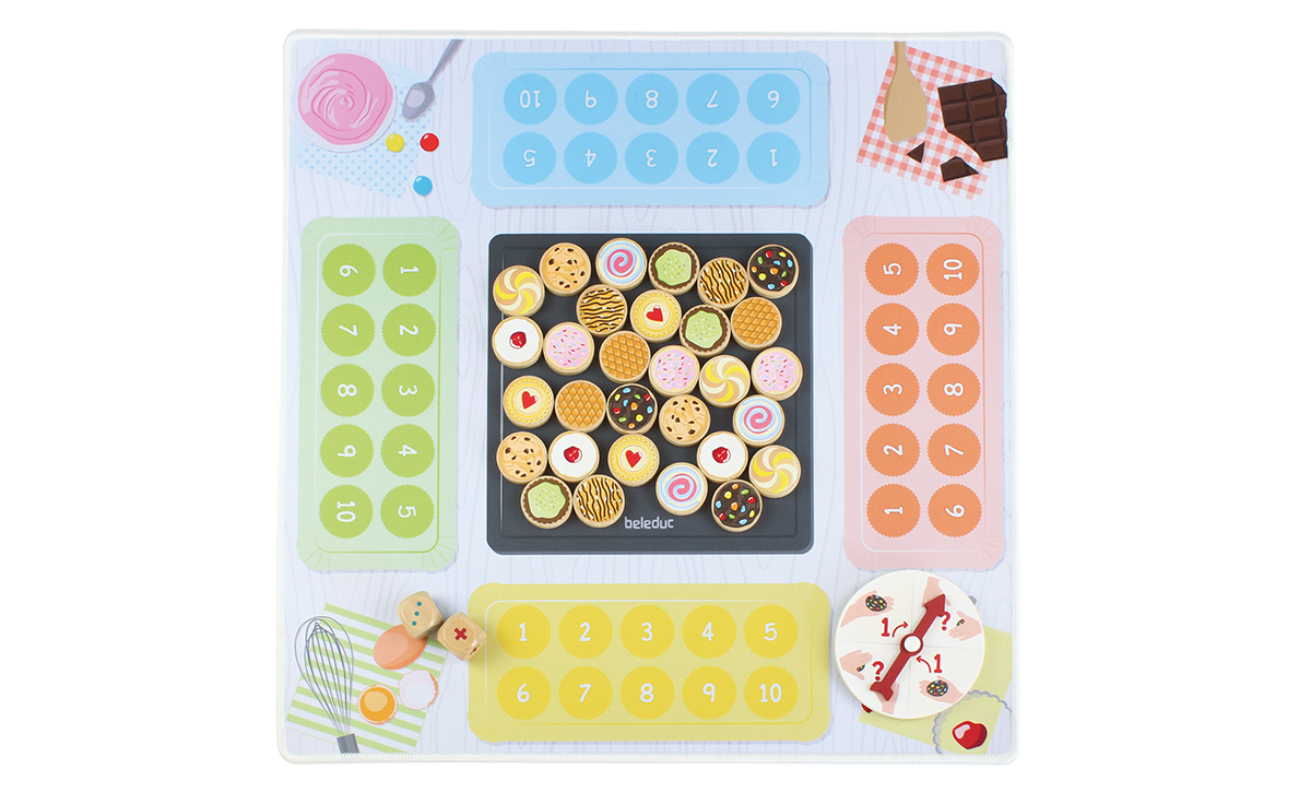Die Geburtstagfeier geht bald los und die Keksbleche müssen vorbereitet werden! Wer sammelt als erstes 10 farbenfrohe Kekse auf seinem Blech? Die Zahlenfolge 1 bis 10 sowie erstes Subtrahieren und Addieren werden geübt und verschiedene Spielvarianten als Memory sowie zum Frei- und Rollenspiel sind ebenso möglich.