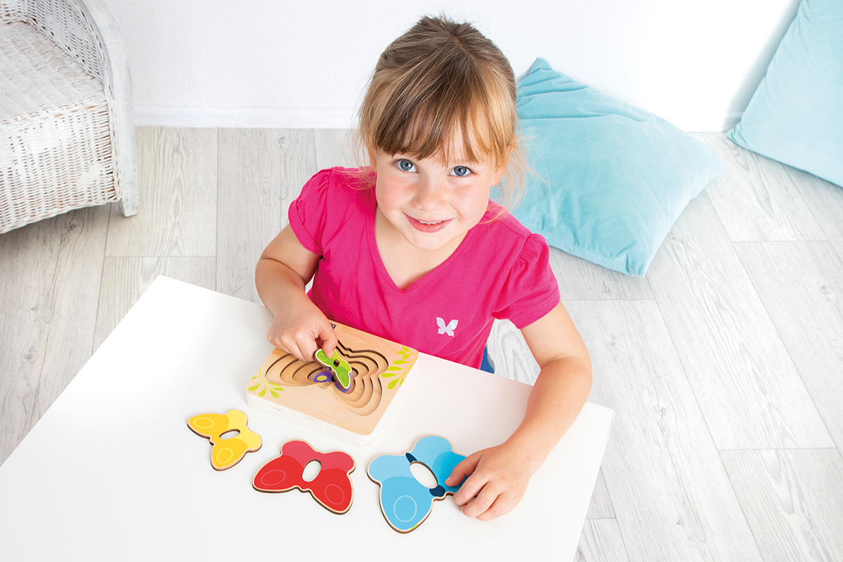 Mit diesem Lagenpuzzle können schon die Kleinsten spielend leicht die Welt der Schmetterlinge erkunden.