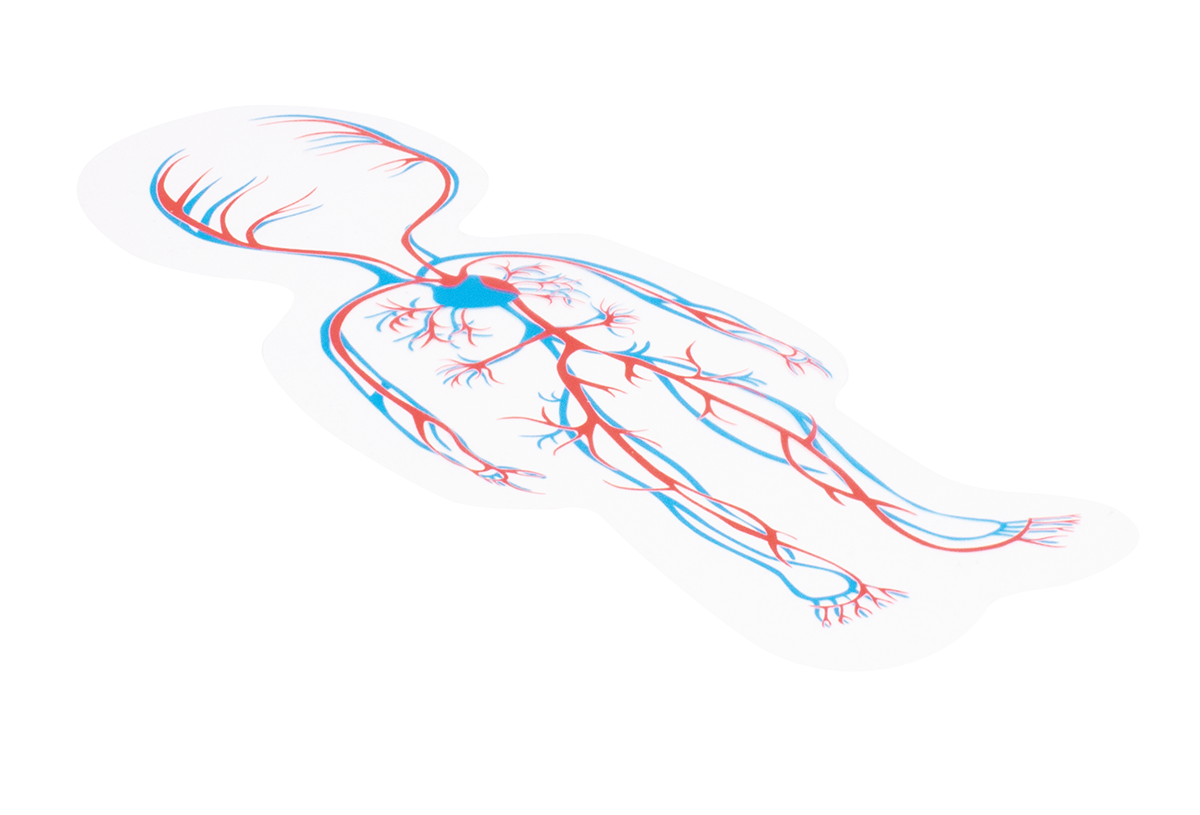 mit Darstellung des Blutkreislaufes, vom nackten, bis hin zum angezogenen Jungen.