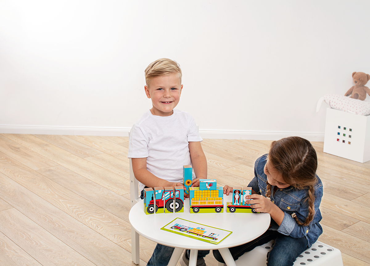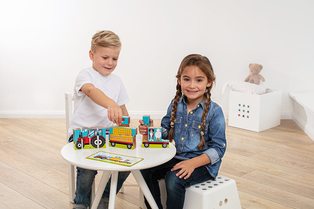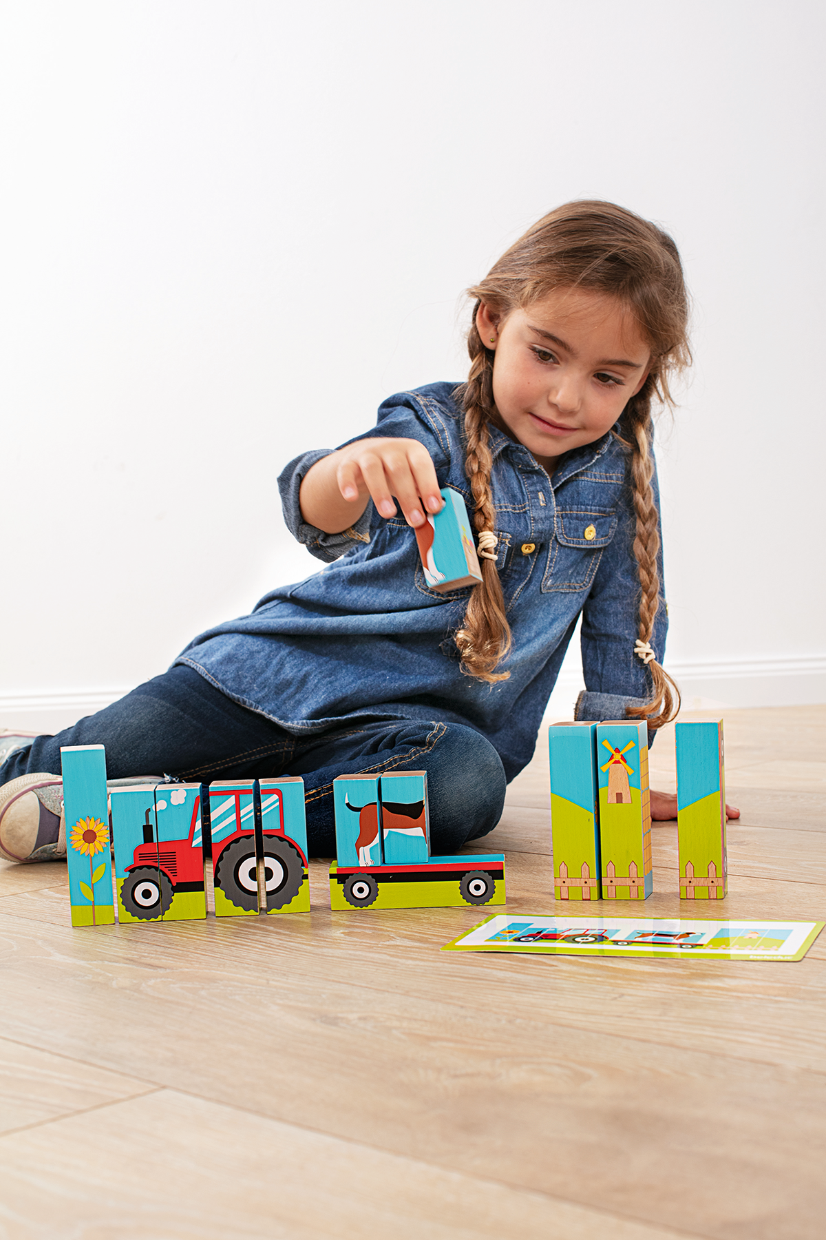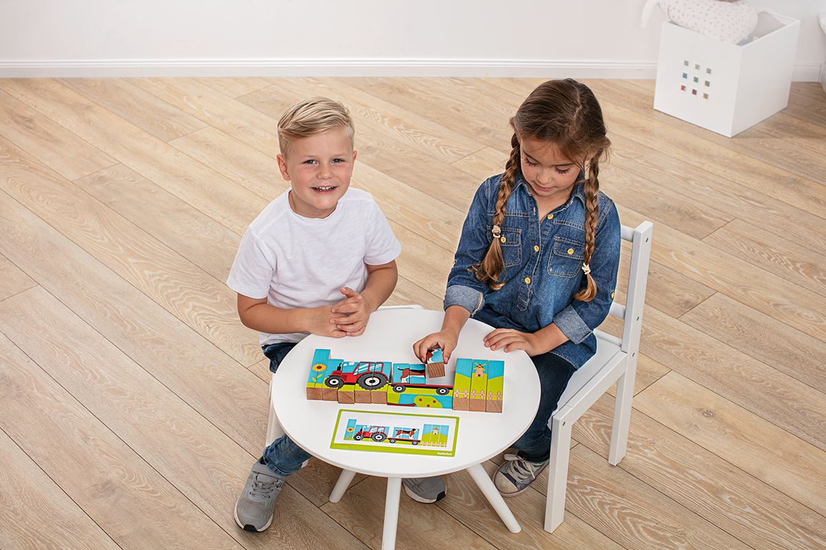Nebeneinander, übereinander, durcheinander…hier ist Fantasie gefragt! Die vielseitigen Blockpuzzle-Elemente können beliebig miteinander kombiniert werden.