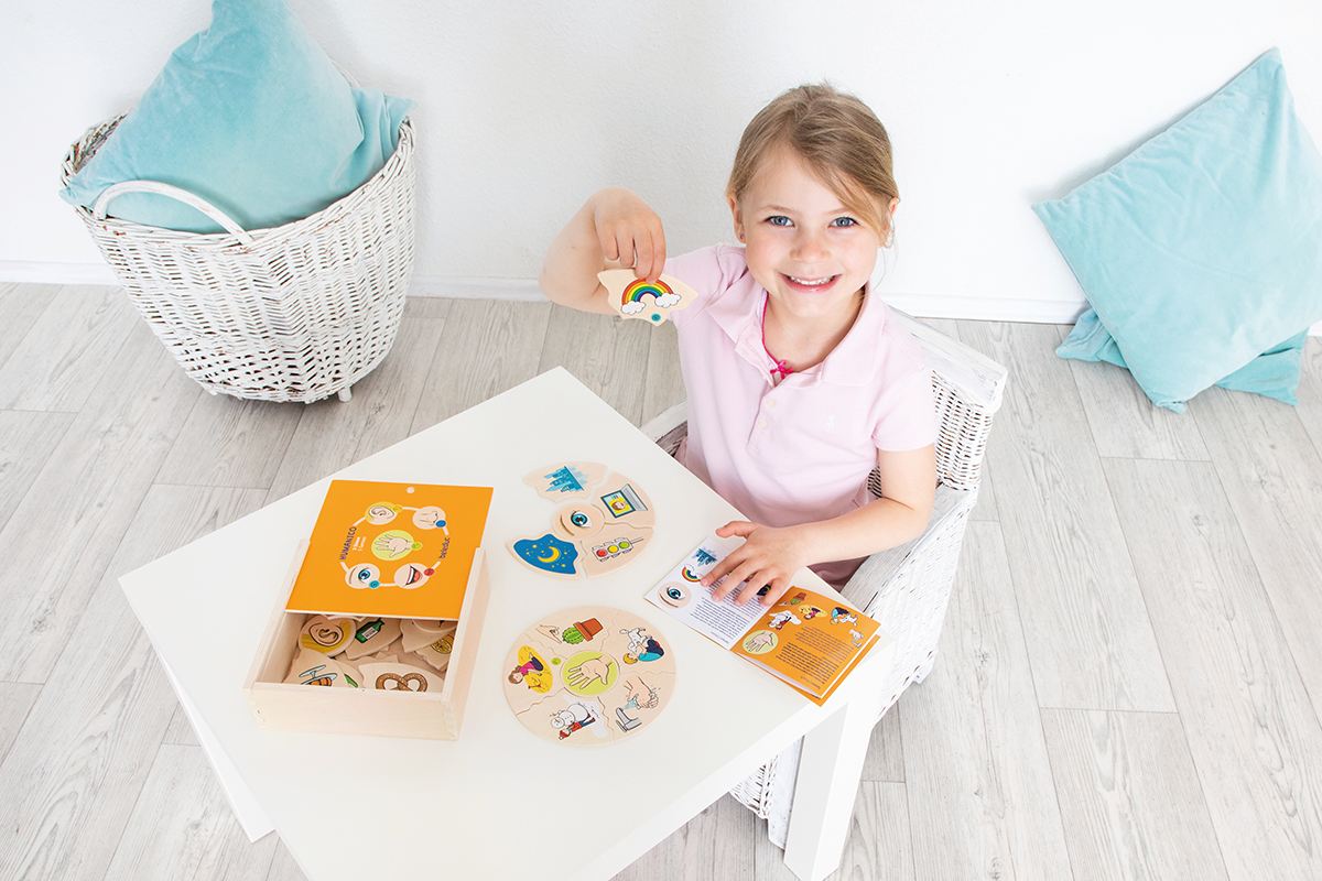Sehen, Hören, Riechen, Schmecken und Tasten. Das wird im Spiel- und Puzzleverlauf und in unterschiedlichen Spielvarianten durch Wahrnehmung, Sensibilisierung und sprachliche Artikulation vermittelt und geübt. Unser Tipp: Die Motive sollten vorab mit den Kindern erarbeitet werden und können hier zu freien Spielen rund um die Themen Sinne und Wahrnehmung eingesetzt werden.