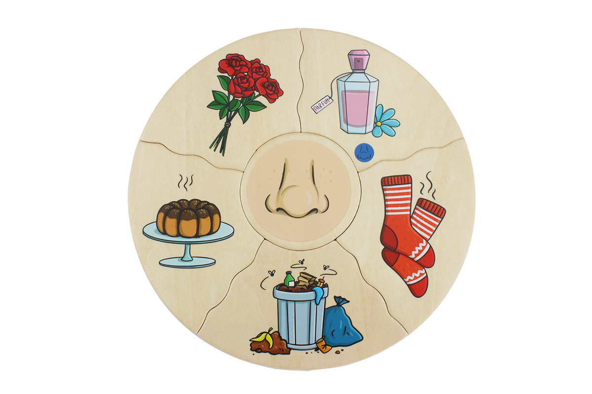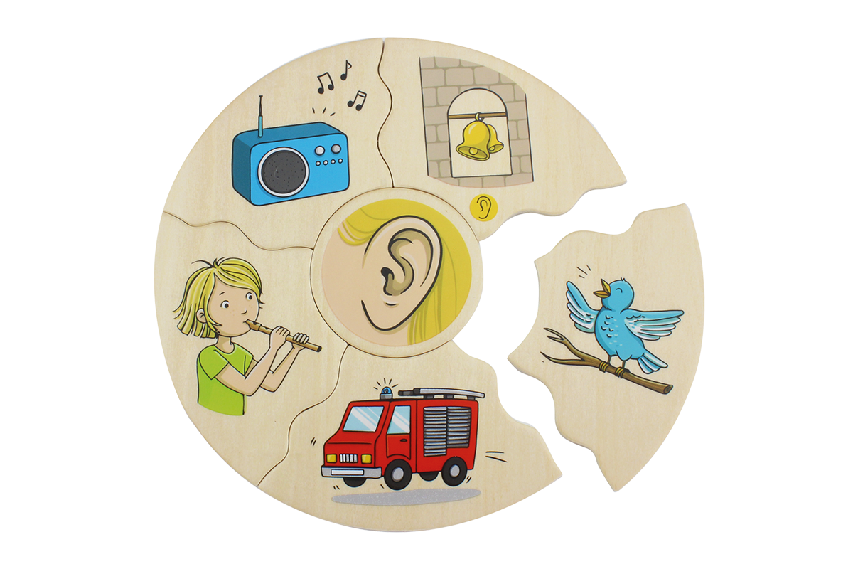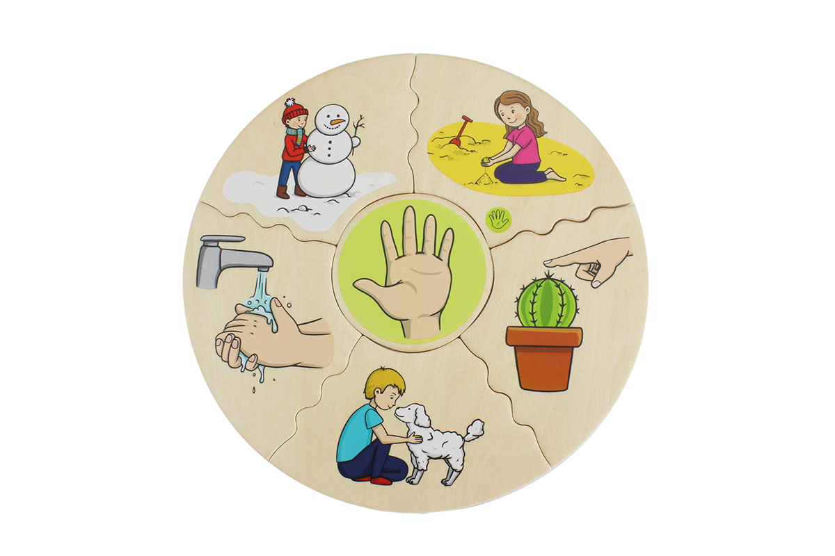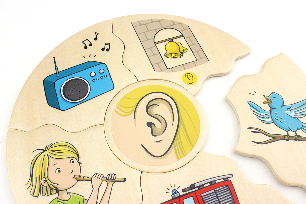 In diesem Puzzle geht es um Erkennen, Zuordnen und Begreifen der fünf Sinne: