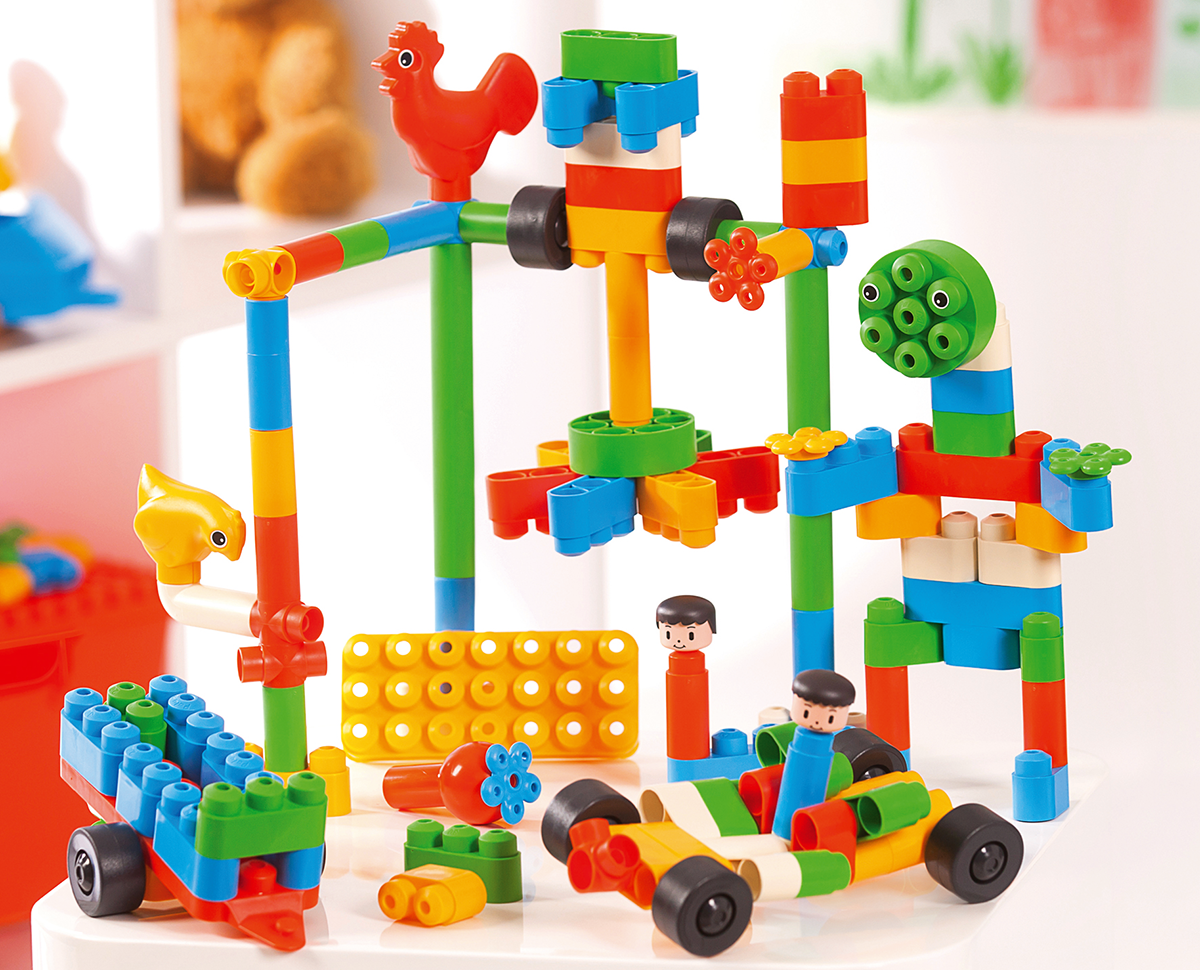 Bausteine in verschiedenen Größen bieten den Kindern einen großen Bauspaß