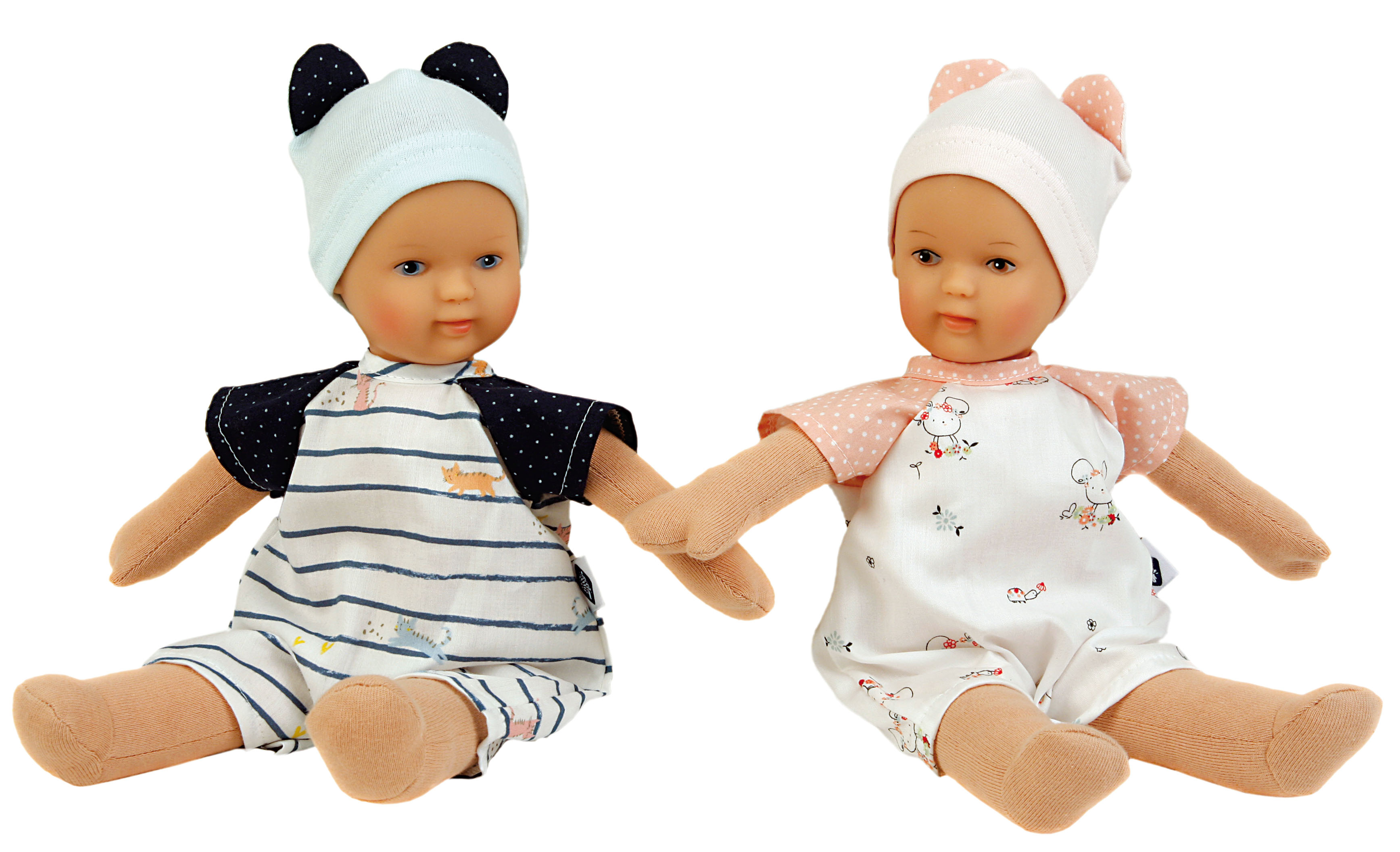 Auch unsere Kleinsten brauchen ein Püppchen zum Schmusen und Liebhaben. Der Kopf der Puppe ist aus Vinyl mit gemalten blauen Augen und gemalten Haaren, sie hat einen weichen Stoffkörper. Das Schmuserle ist in unserer eigenen Puppenmanufaktur in Rauenstein/Thüringen hergestellt. Die Spielkleidung in weiß/blau mit Katzenmotiv ist leicht an- und auszuziehen und ist per Hand waschbar bei 30° C.