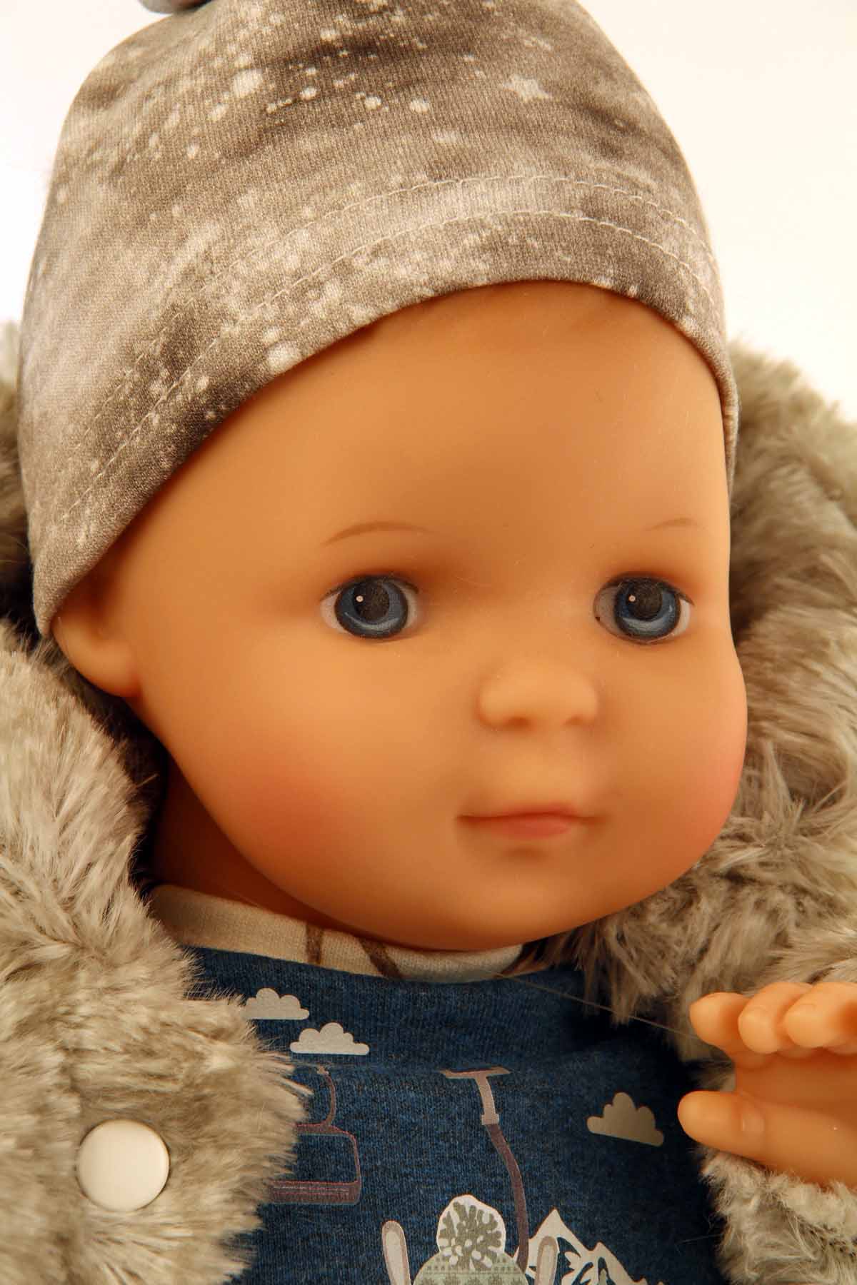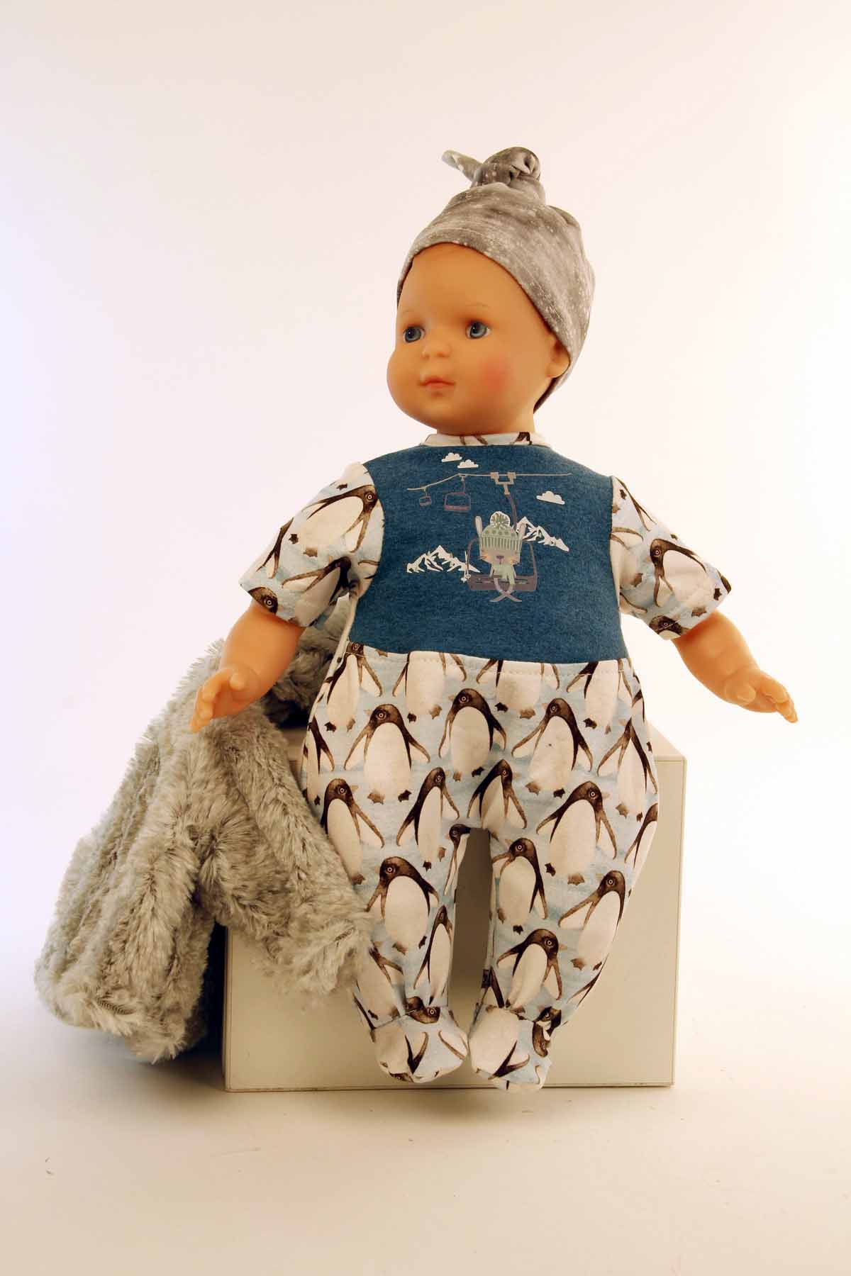 Puppe Schlenkerle 37 cm mit Malhaar und blauen Malaugen, Pinguin-Look