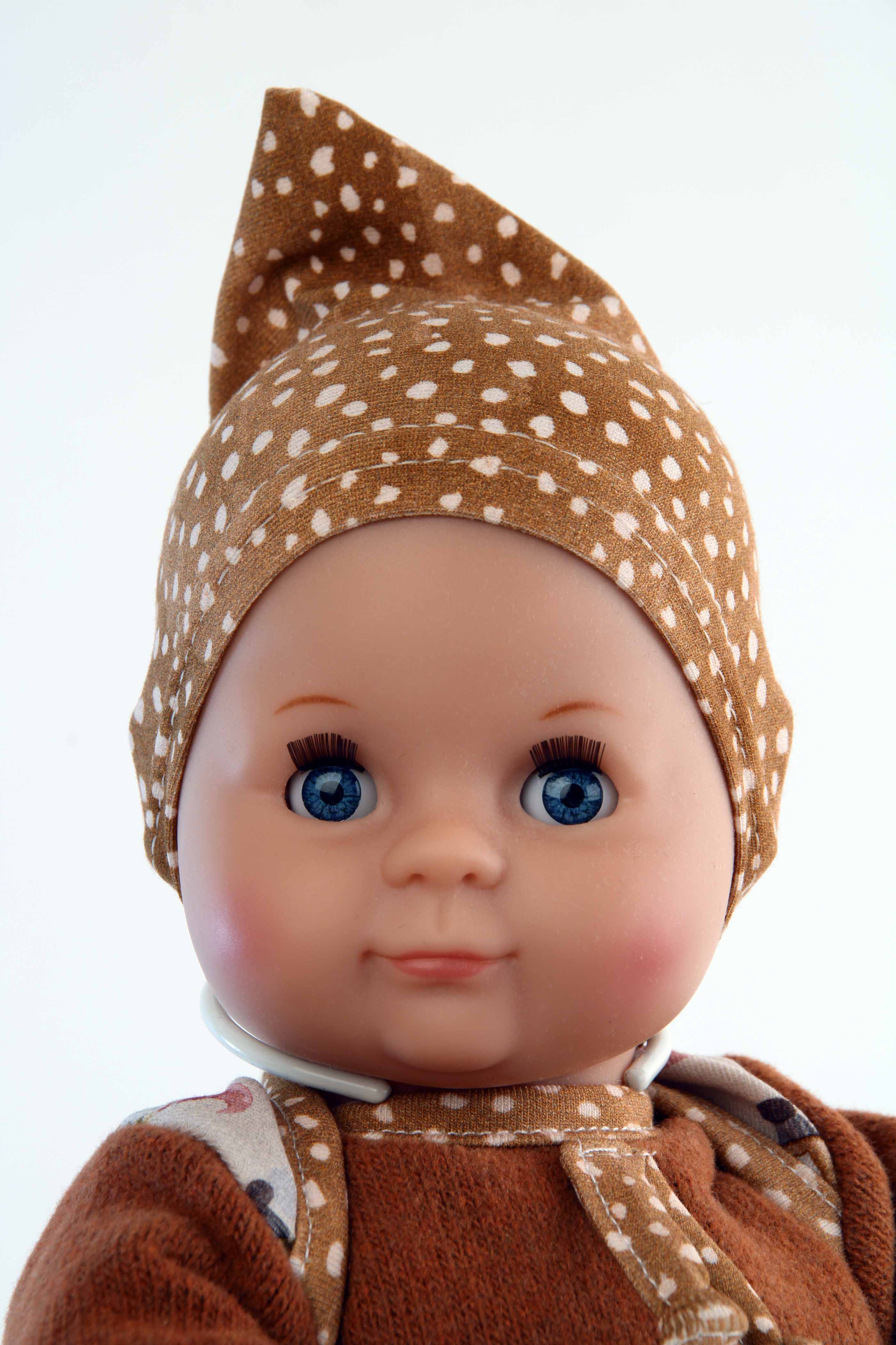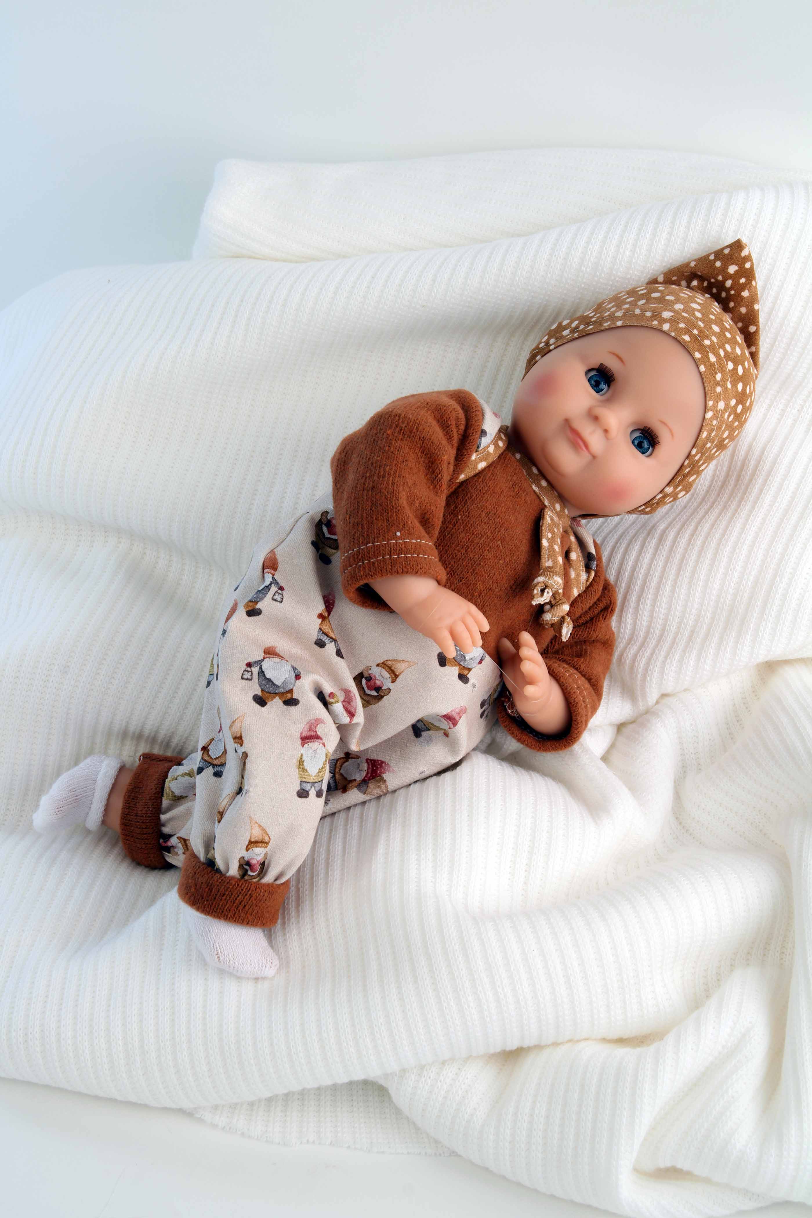 Puppe Schlummerle 32 cm mit Malhaar und blauen Schlafaugen, Wichtelkleidung