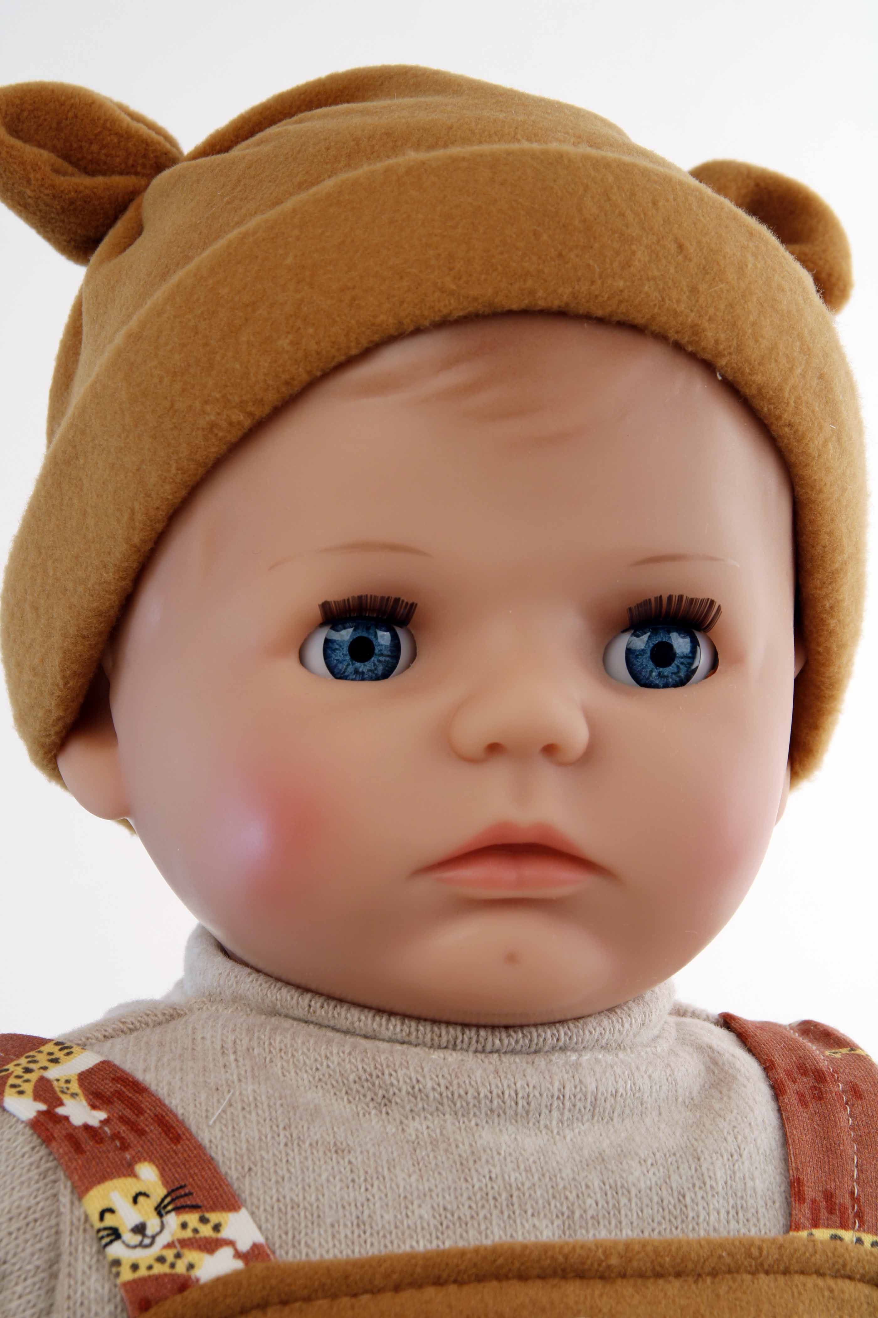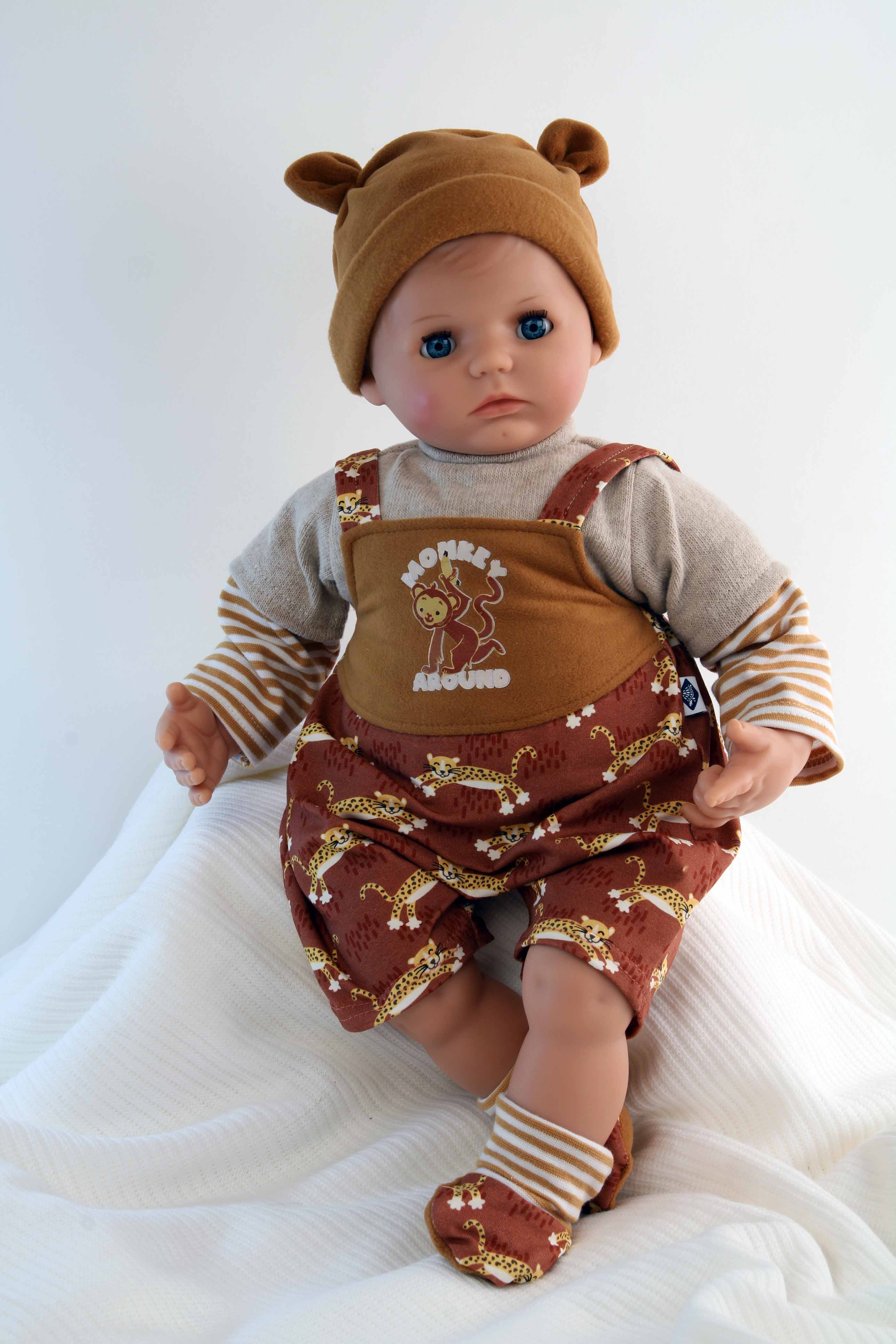 Puppe Peterle 52 cm mit Malhaar, blauen Schlafaugen, Kleidung Safari