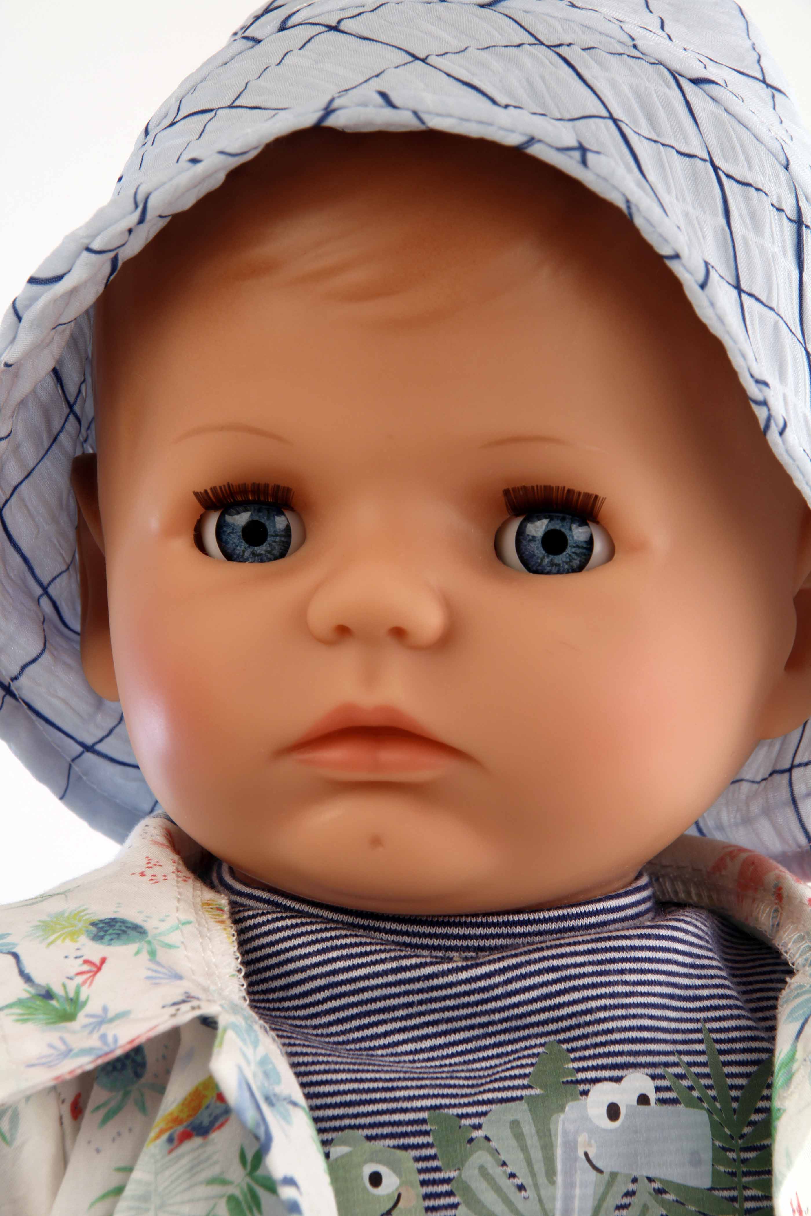 Produktinformationen "Puppe Peterle 52 cm mit Malhaar, blauen Schlafaugen, Kleidung Dschungel-Outfit"