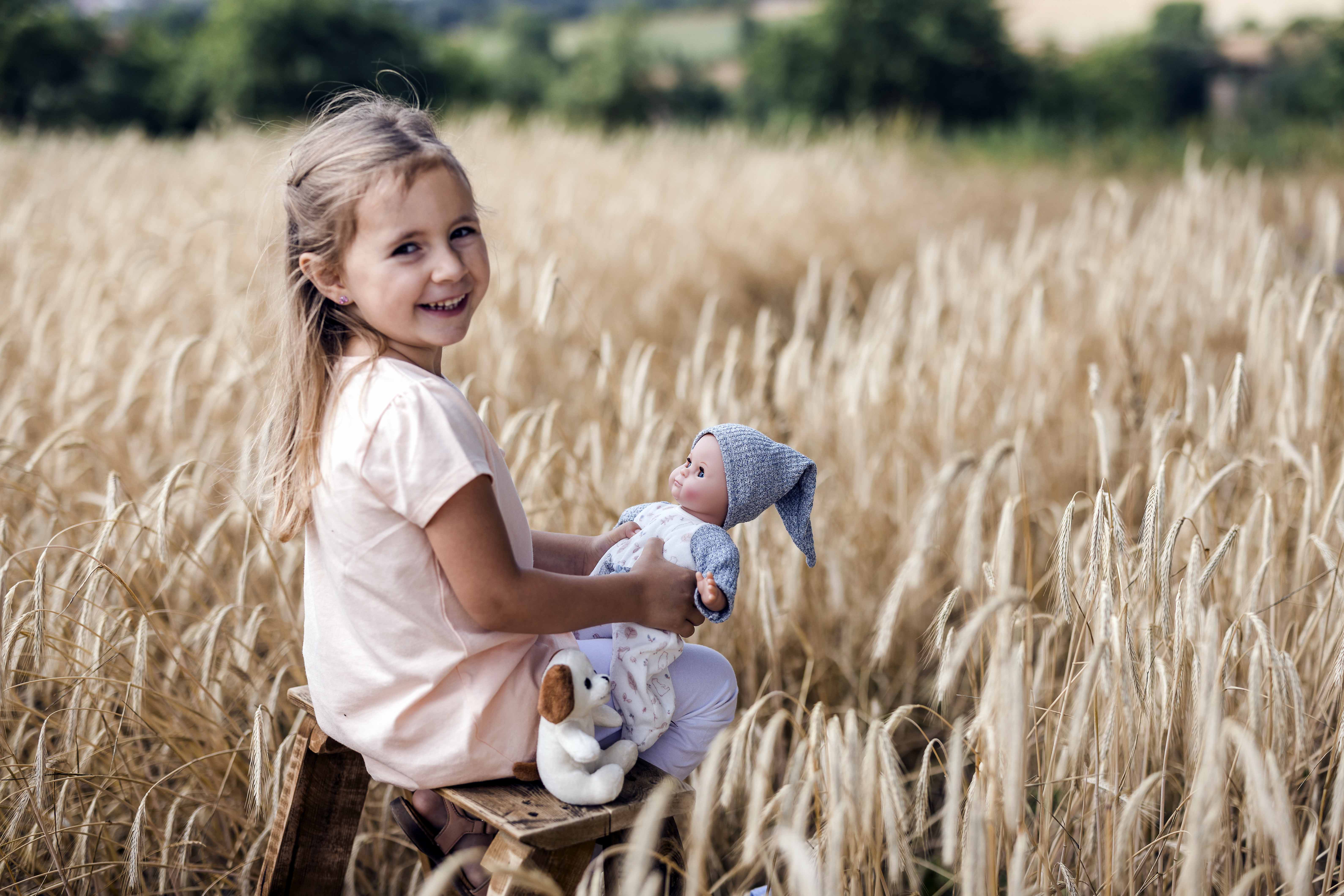 Mein erstes Schlummerle, die beliebteste und bekannteste Puppe, ohne Haare für die Kleinsten. Ein unverwechselbares Gesicht vereint Qualität und Spielwert und begeistert schon seit Generationen unsere Puppenmuttis.Die Puppe wird in unserer eigenen Puppenmanufaktur in Rauenstein/Thüringen hergestellt. Arme, Beine und Kopf sind aus Vinyl, sie hat lustige braune Schlafaugen und gemalte Haare. Es trägt einen rose Strickoverall mit angenähtem Blumenkleid und eine Strickmütze. Die Kleidung ist leicht an- und ausziehbar und bei 30 Grad per Hand waschbar. STICKEREI: Als besonderen Service bieten wir an, eine individuelle Widmung (z.B. Name und Geburtsdatum der Puppenmutti) mit einem kleinen Aufpreis auf den Puppenbauch zu sticken. Wenn Sie eine ganz persönliche Puppe für Ihr Kind möchten, dann geben Sie Ihre Wunschbestickung oben in die dafür vorgesehenen Felder ein. Achtung: Nicht geeignet für Kinder unter 36 Monaten, da Kleinteile verschluckt werden können.
