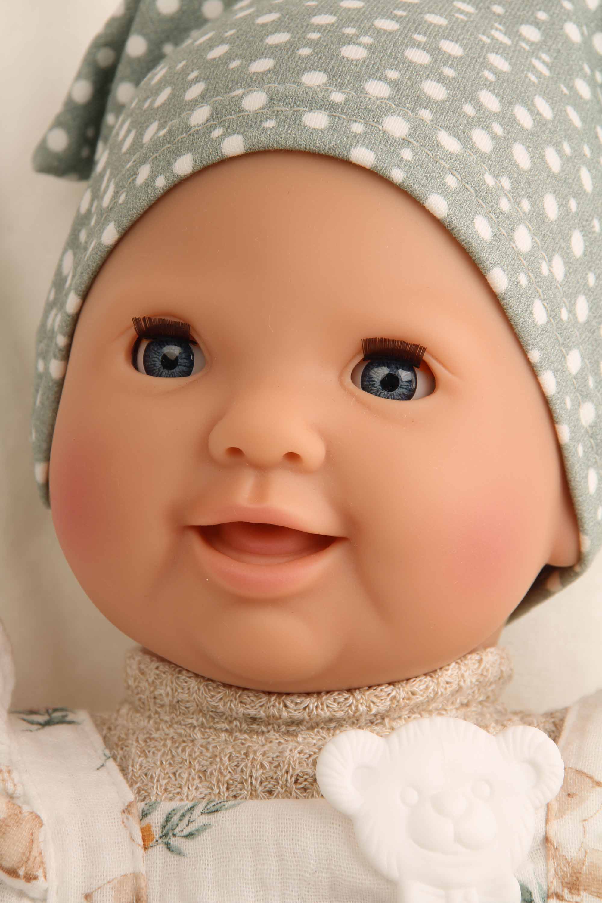Lenchen ist die perfekte Puppe zum Kuscheln und Liebhaben! Sie teilt gerne die großen Freuden und kleinen Sorgen der Kinder und ist immer bereit, ein offenes Ohr zu bieten. Mit ihren sanften, blauen Schlafaugen begleitet sie die Kleinen liebevoll beim Einschlafen und sorgt für Geborgenheit in der Nacht.Der weiche Stoffkörper von Lenchen schmiegt sich angenehm in die Arme und macht jede Kuschelstunde zu einem besonderen Erlebnis. Sie bringt sogar einen Schnuller mit, den sie gerne zum Trösten verwendet – ideal für kleine Träumer und große Abenteurer!Mit einer Größe von 37 cm und im niedlichen Outfit mit Fuchs-Print gekleidet, ist Lenchen ein echter Hingucker und ein treuer Begleiter für Kinder ab 36 Monaten. Die Kleidung der Puppe ist bei 30 Grad per Hand waschbar, sodass sie immer frisch und sauber bleibt.Hergestellt in liebevoller Handarbeit in unserer eigenen Manufaktur in Rauenstein/Thüringen, steht Lenchen für höchste Qualität und Sorgfalt.Machen Sie Lenchen zum neuen besten Freund Ihres Kindes und schenken Sie unvergessliche Kuschel-Momente!