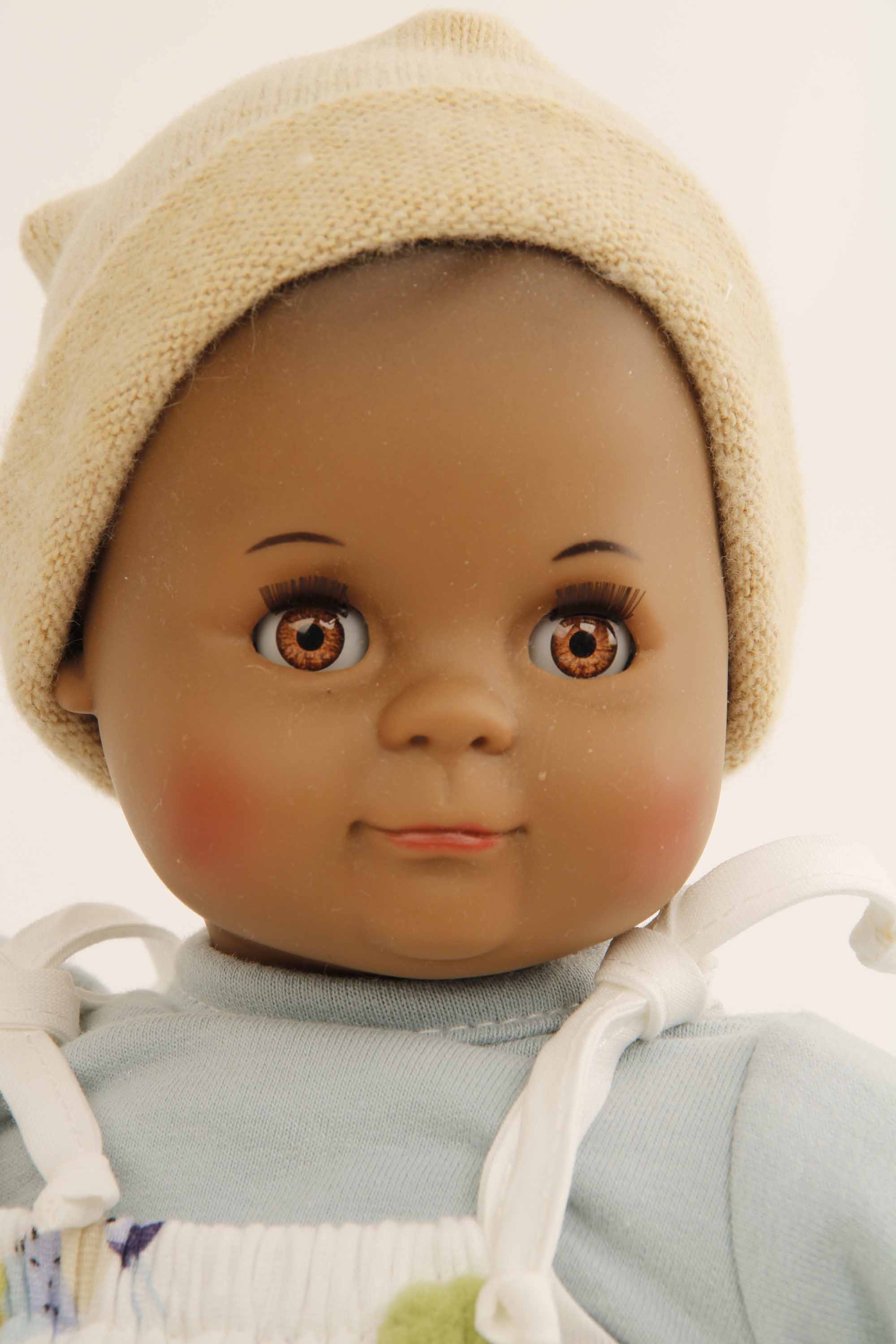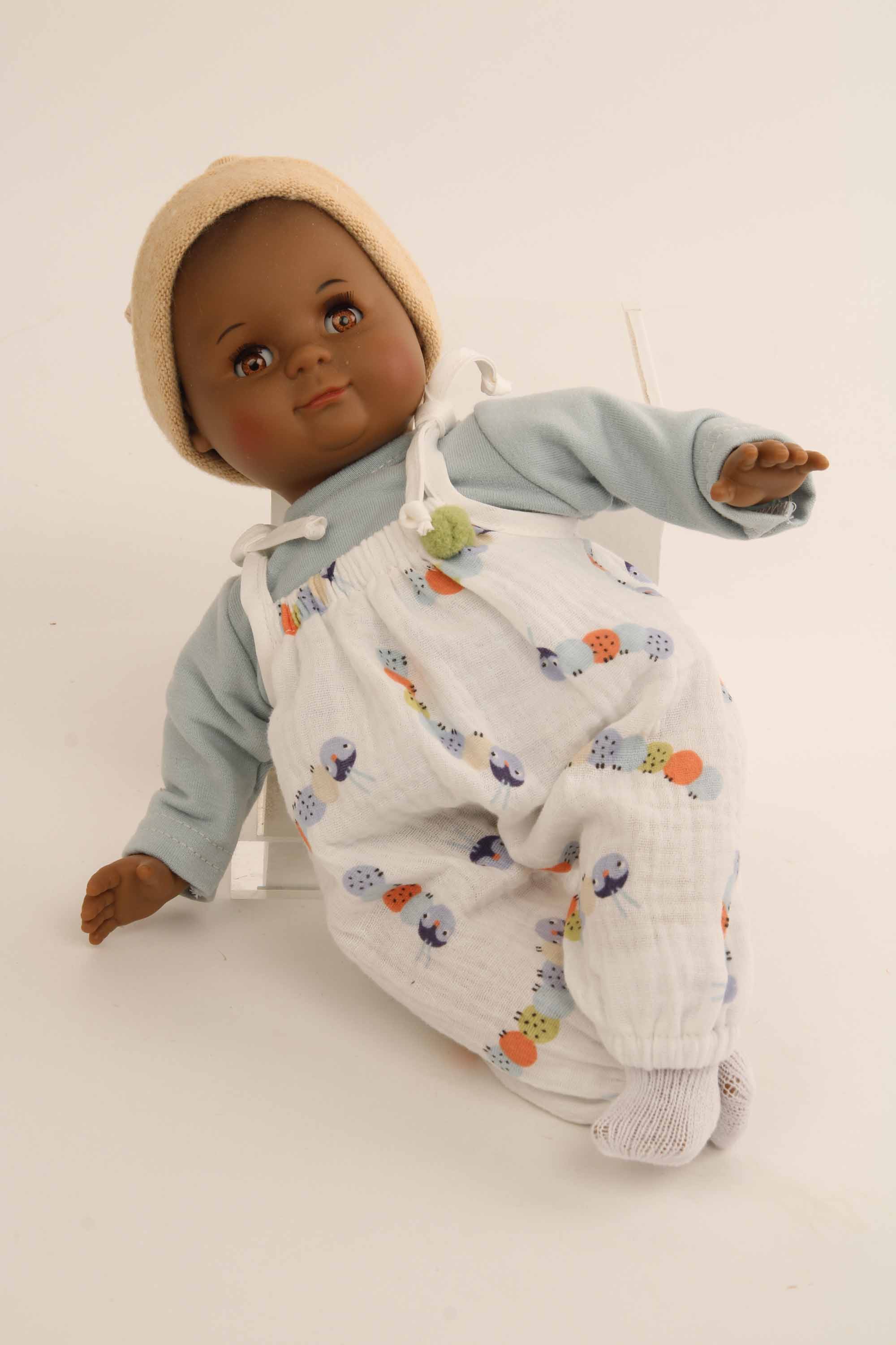 Produktinformationen "Puppe schwarz Schlummerle 32 cm mit Malhaar und braunen Schlafaugen, Kleidung Räupchen"