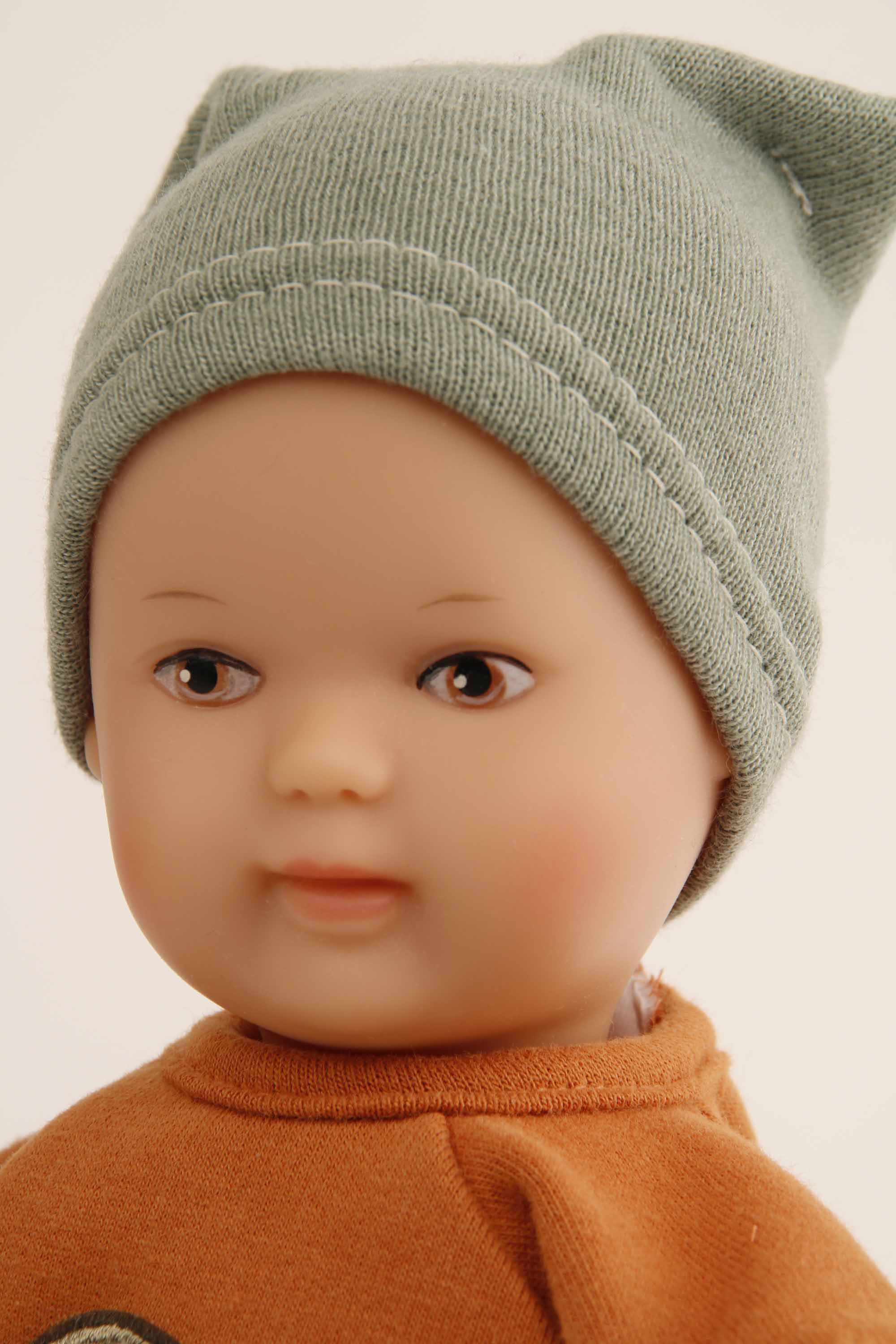 Puppe Schmuserle 30 cm Malhaar, braune Malaugen, Kleidung Bärchen