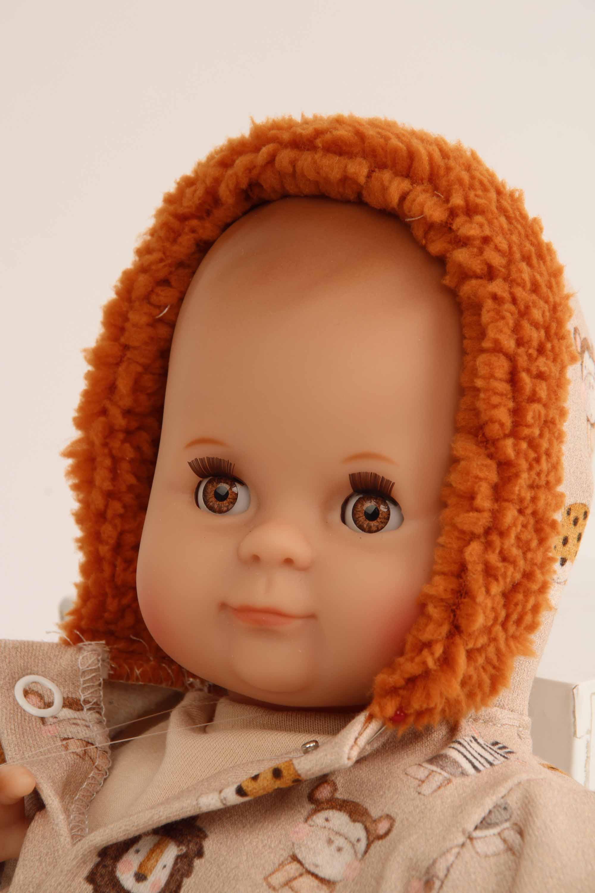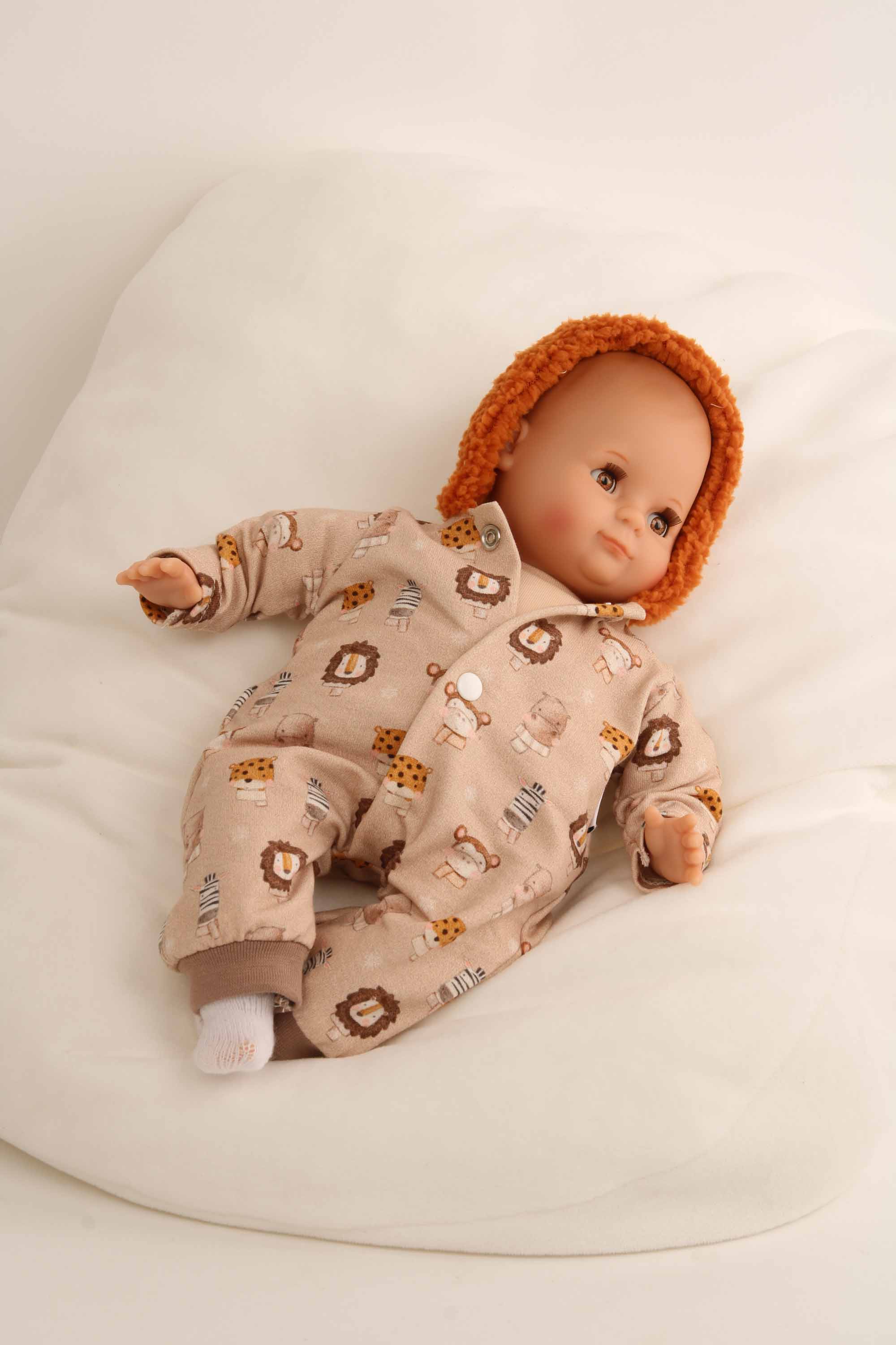 Puppe Schlummerle 32 cm mit Malhaar und braunen Schlafaugen, Overall Löwe