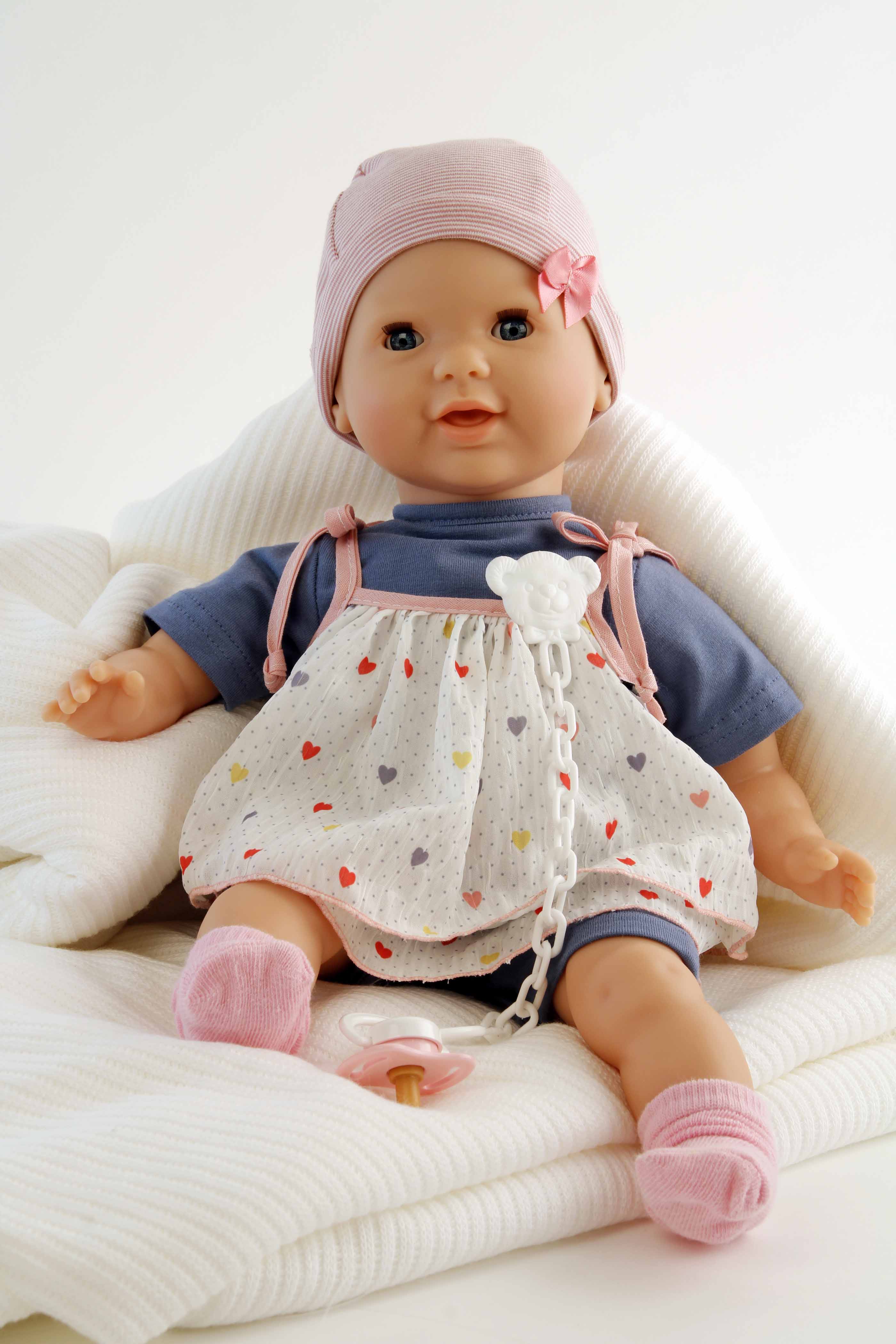 Produktinformationen "Schnullerbaby Lenchen 37 cm, Malhaar, blaue Schlafaugen, Kleidung blau/weiss/rose"