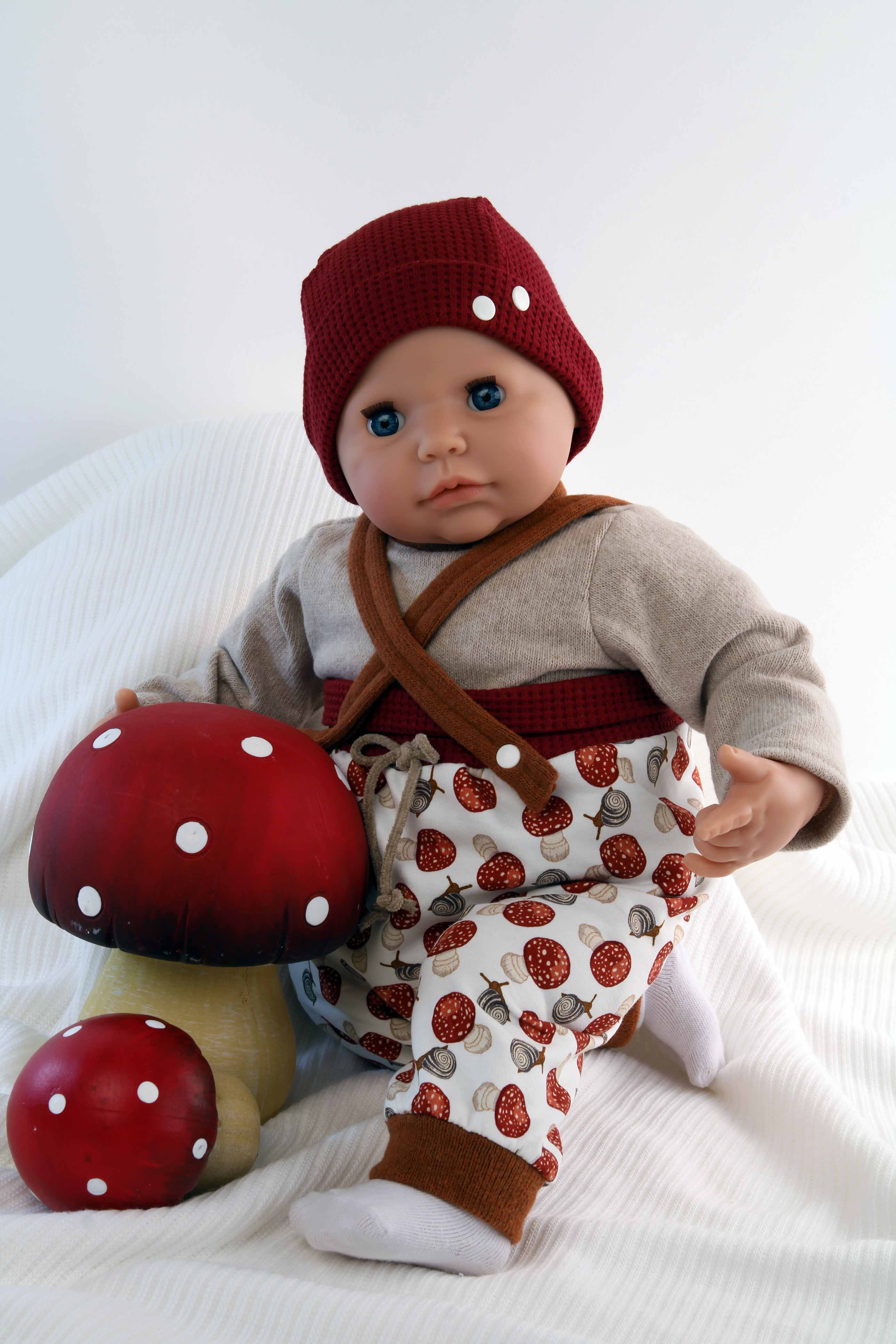Baby Julchen 52 cm Malhaar, blaue Schlafaugen, Kleidung Pilzchen/Schnecke