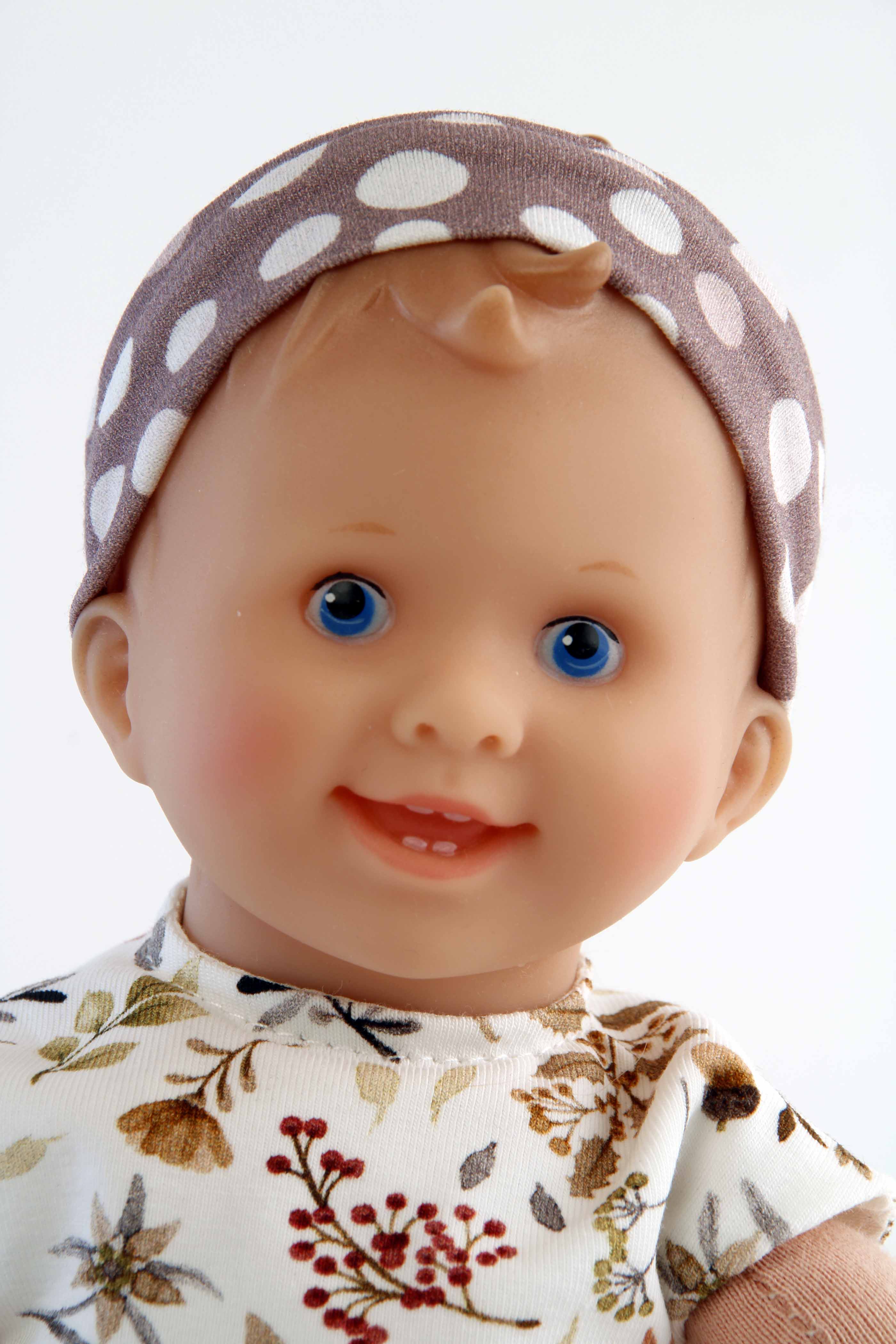 Löckchen ist ein neues kuschliges Stoffpüppchen für unsere Kleinsten ab 0 Jahre. Es ist 30 cm groß und hat gemalte braune Augen. Das niedliche, lustige Gesicht verbreitet im Handumdrehen gute Laune. Anschmiegsam mit weichem Stoffkörper ist es ideal zum Schmusen und hilft gerne beim Einschlafen. Der Kopf der Puppe ist aus Vinyl mit gemalten braunen Augen und gemalten Haaren, Löckchen ist in unserer eigenen Puppenmanufaktur in Rauenstein/Thüringen hergestellt. Die Spielkleidung ist leicht an- und auszuziehen und ist per Hand waschbar bei 30° C.