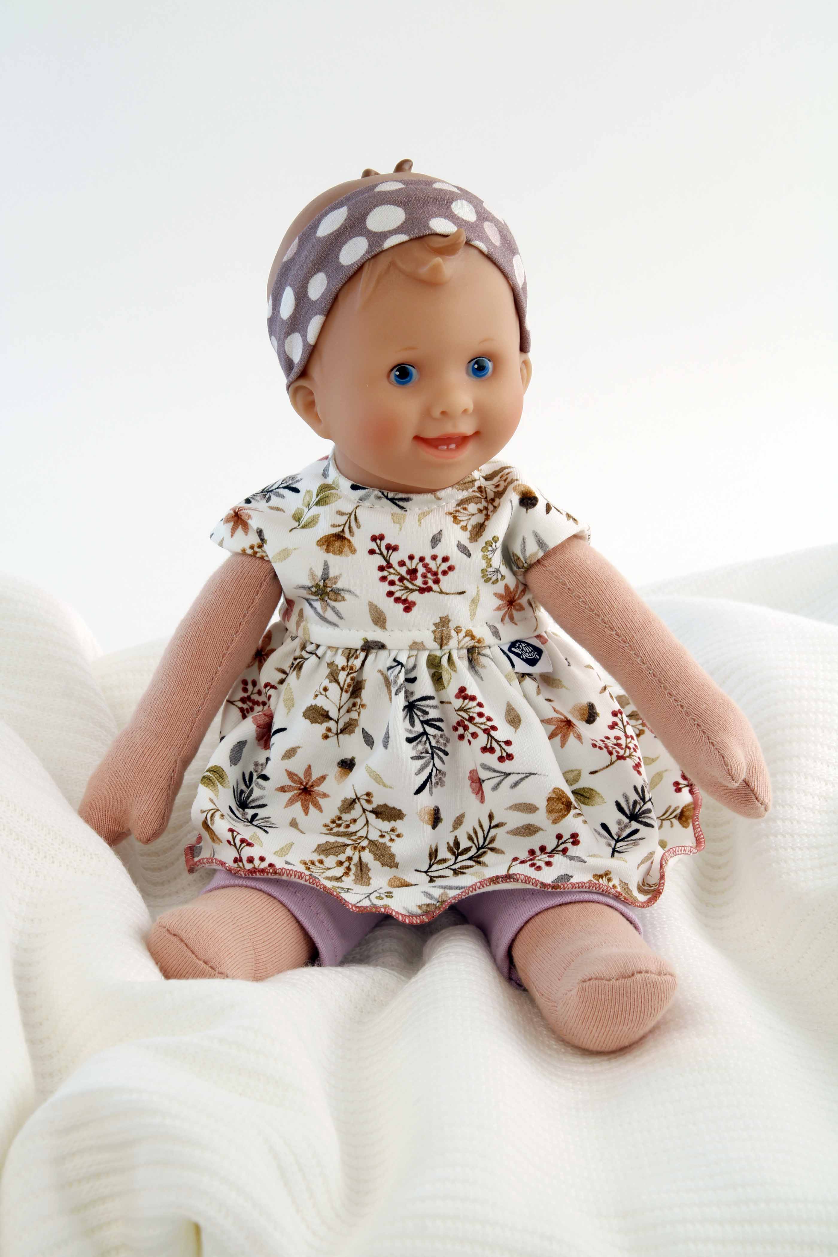 Entdecken Sie unser „Löckchen“ – das kuschelige Stoffpüppchen, das speziell für unsere Kleinsten ab 9 Monate entworfen wurde! Mit einer Größe von 30 cm und seinen charmanten, gemalten blauen Augen bringt Löckchen im Handumdrehen gute Laune ins Kinderzimmer.Der weiche Stoffkörper macht Löckchen zum idealen Begleiter zum Schmusen und Einschlafen. Der Kopf aus hochwertigem Vinyl mit gemalten blauen Augen und Haaren, sorgt für ein liebevolles und lustiges Gesicht, das Kinderherzen höher schlagen lässt.Hergestellt in unserer eigenen Puppenmanufaktur in Rauenstein/Thüringen, steht Löckchen für Qualität und liebevolle Handarbeit. Die Spielkleidung mit Blumendruck ist nicht nur süß, sondern auch praktisch: Sie lässt sich leicht an- und ausziehen und kann bei 30° C von Hand gewaschen werden. Löckchen wird schnell zum treuen Freund und Spielkameraden.