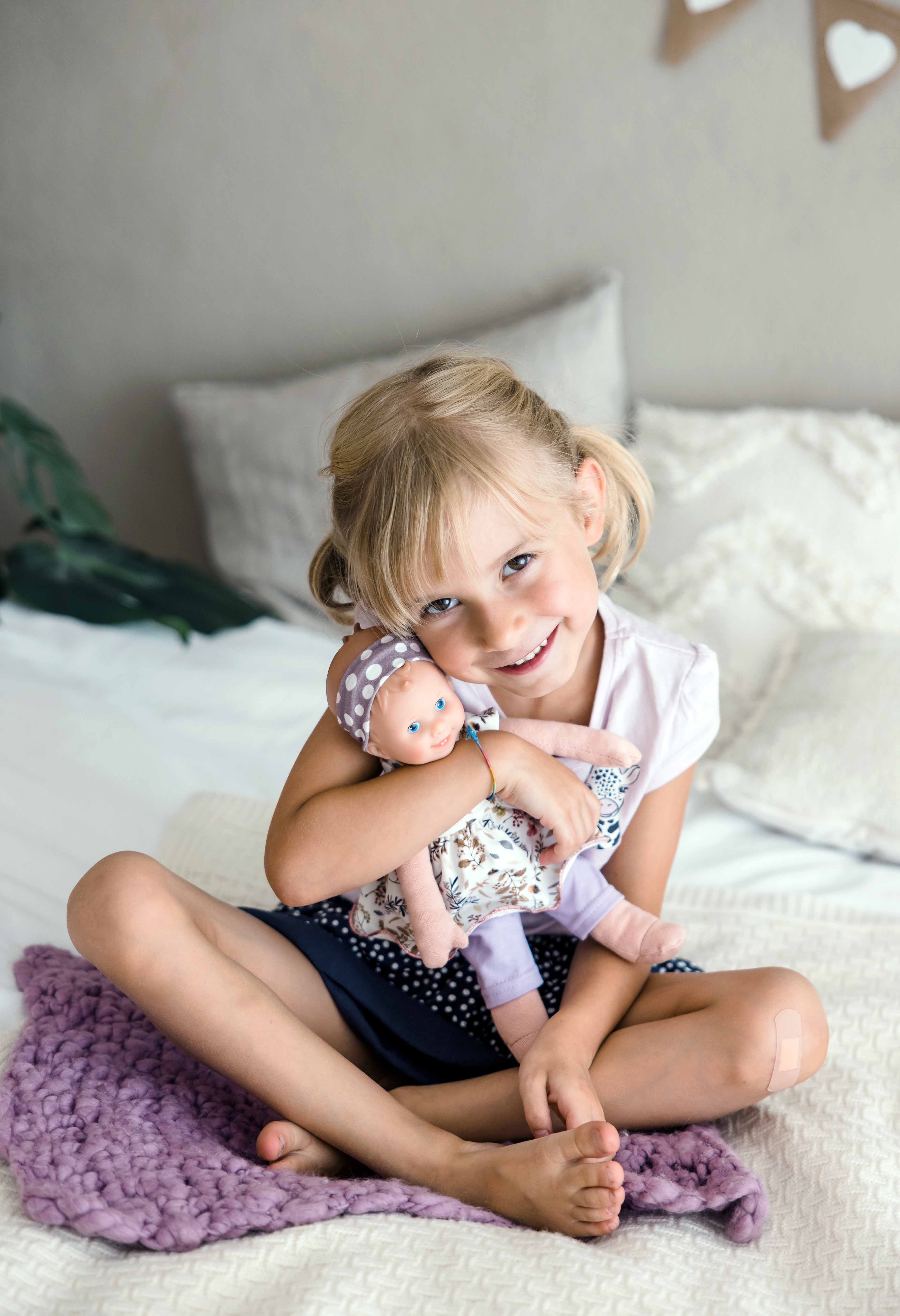 Entdecken Sie unser „Löckchen“ – das kuschelige Stoffpüppchen, das speziell für unsere Kleinsten ab 9 Monate entworfen wurde! Mit einer Größe von 30 cm und seinen charmanten, gemalten blauen Augen bringt Löckchen im Handumdrehen gute Laune ins Kinderzimmer.Der weiche Stoffkörper macht Löckchen zum idealen Begleiter zum Schmusen und Einschlafen. Der Kopf aus hochwertigem Vinyl mit gemalten braune Augen und Haaren, sorgt für ein liebevolles und lustiges Gesicht, das Kinderherzen höher schlagen lässt.Hergestellt in unserer eigenen Puppenmanufaktur in Rauenstein/Thüringen, steht Löckchen für Qualität und liebevolle Handarbeit. Die Spielkleidung ist nicht nur süß, sondern auch praktisch: Sie lässt sich leicht an- und ausziehen und kann bei 30° C von Hand gewaschen werden. Löckchen wird schnell zum treuen Freund und Spielkameraden.