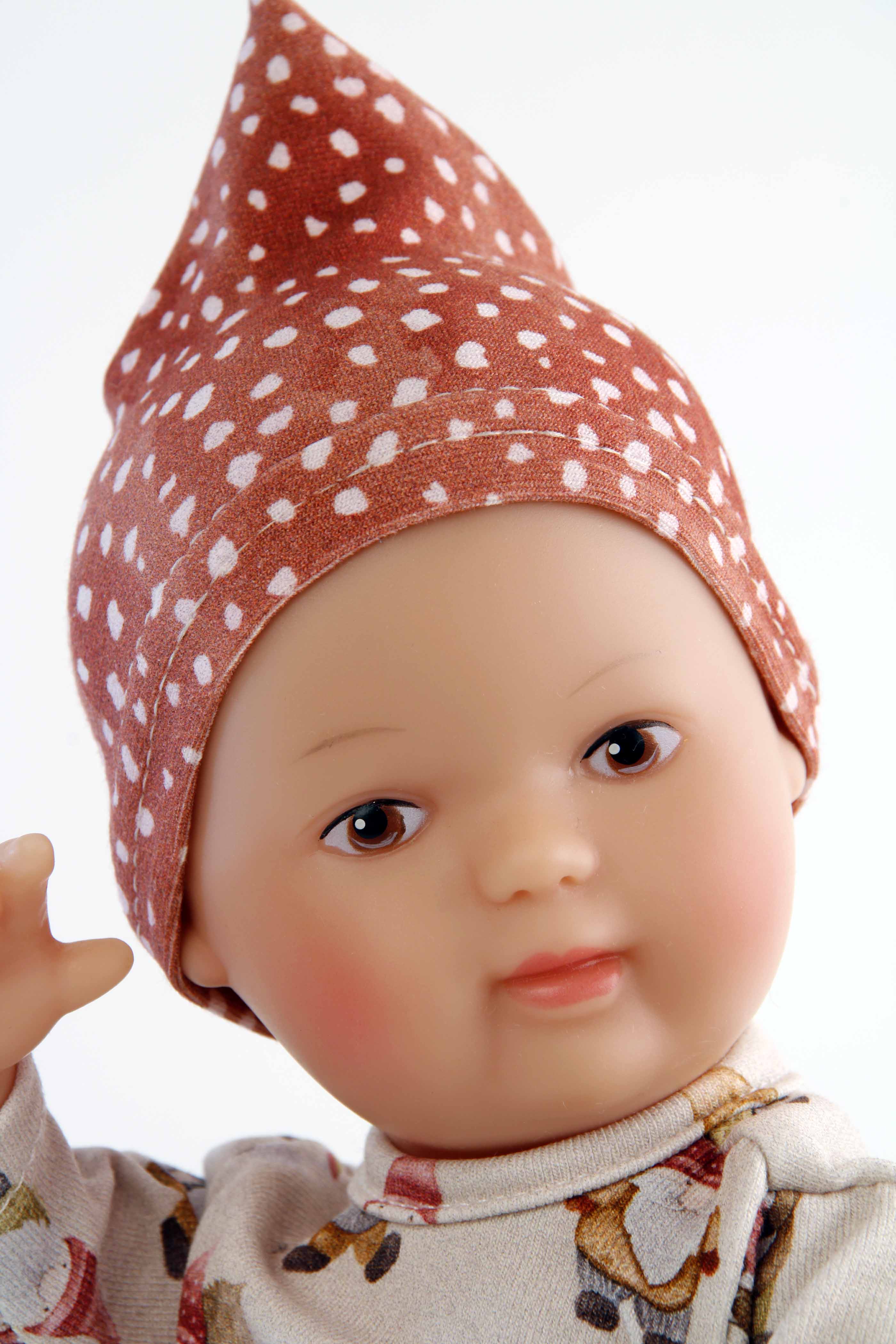 Mit ihrem gemalten Haar und den strahlend braunen Malaugen wird "Mein erstes Baby" schnell zum Lieblingsspielzeug. Die lustige Wichtelkleidung nicht nur ein echter Hingucker, sondern auch praktisch: Sie lässt sich leicht an- und ausziehen und kann per Hand bei 30° C gewaschen werden.