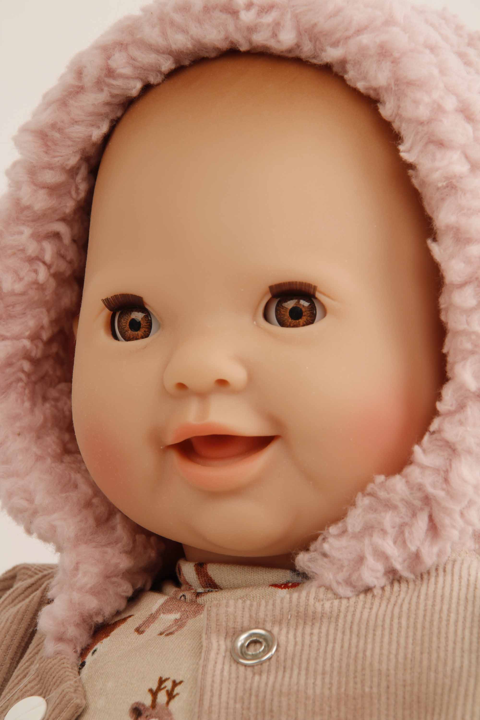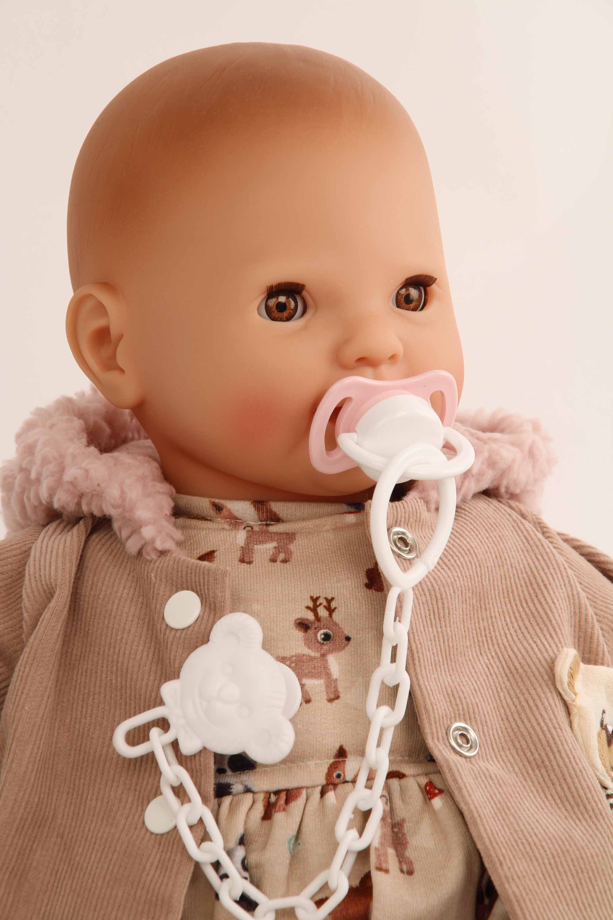Produktinformationen "Schnullerbaby Lenchen 37 cm, Malhaar, braune Schlafaugen, Kleidung Waldtiere"