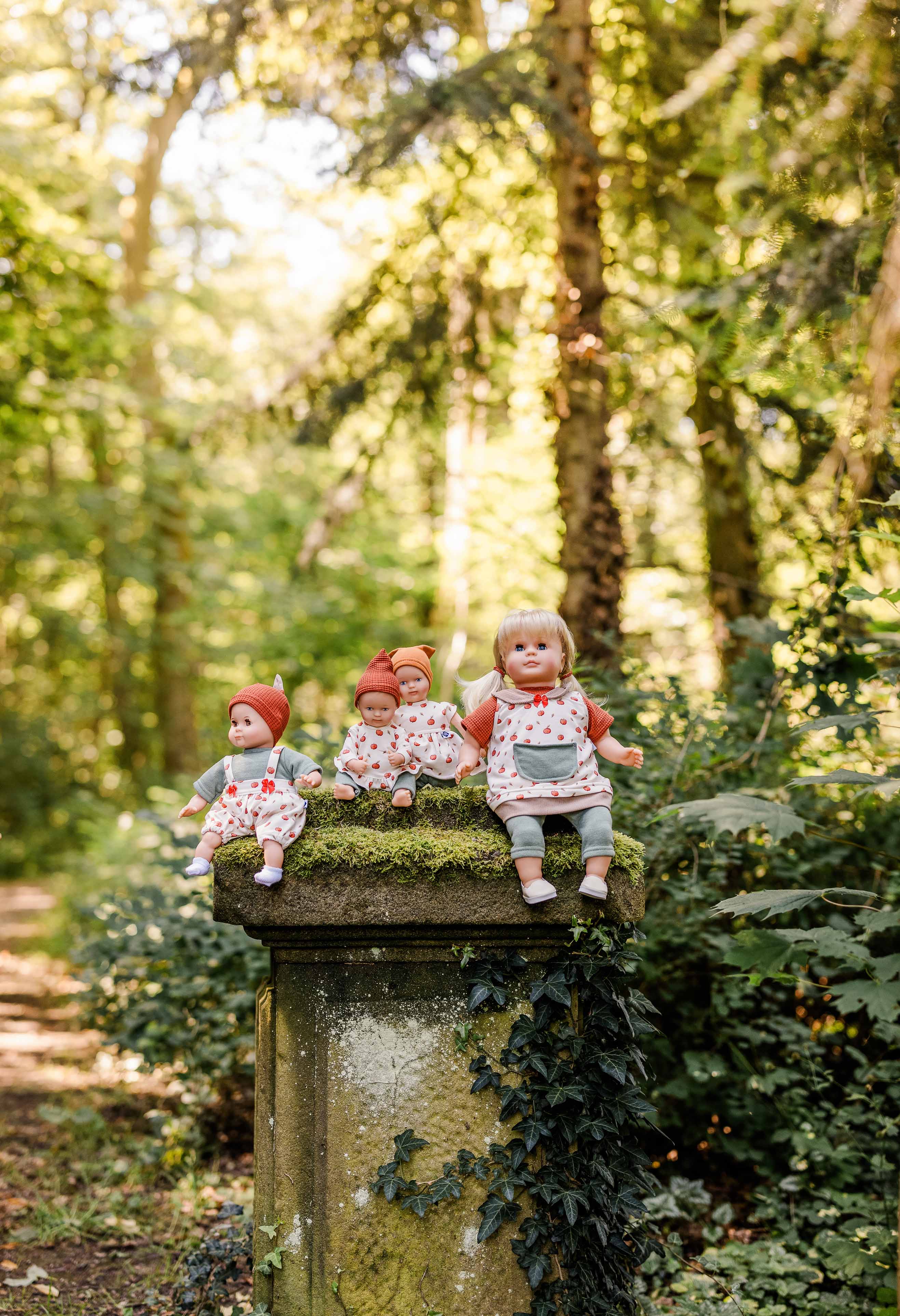 Kleidung bestehend aus einer knielangen rostroten Strickhose, einer mit Pilzen und Schnecken bedruckten Tunika und einem passenden Stirnband. Die Kleidung ist bei 30 Grad per Hand waschbar. Diese Kleidung paßt auch unserer Puppe Mein 1. Baby Gr. 28. und dem Löckchen Gr. 30 Diese Kleidung wurde komplett in Handarbeit in unserer Puppenmanufaktur in Rauenstein/Thüringen gefertigt.Die Puppe gehört nicht zum Lieferumfang.
