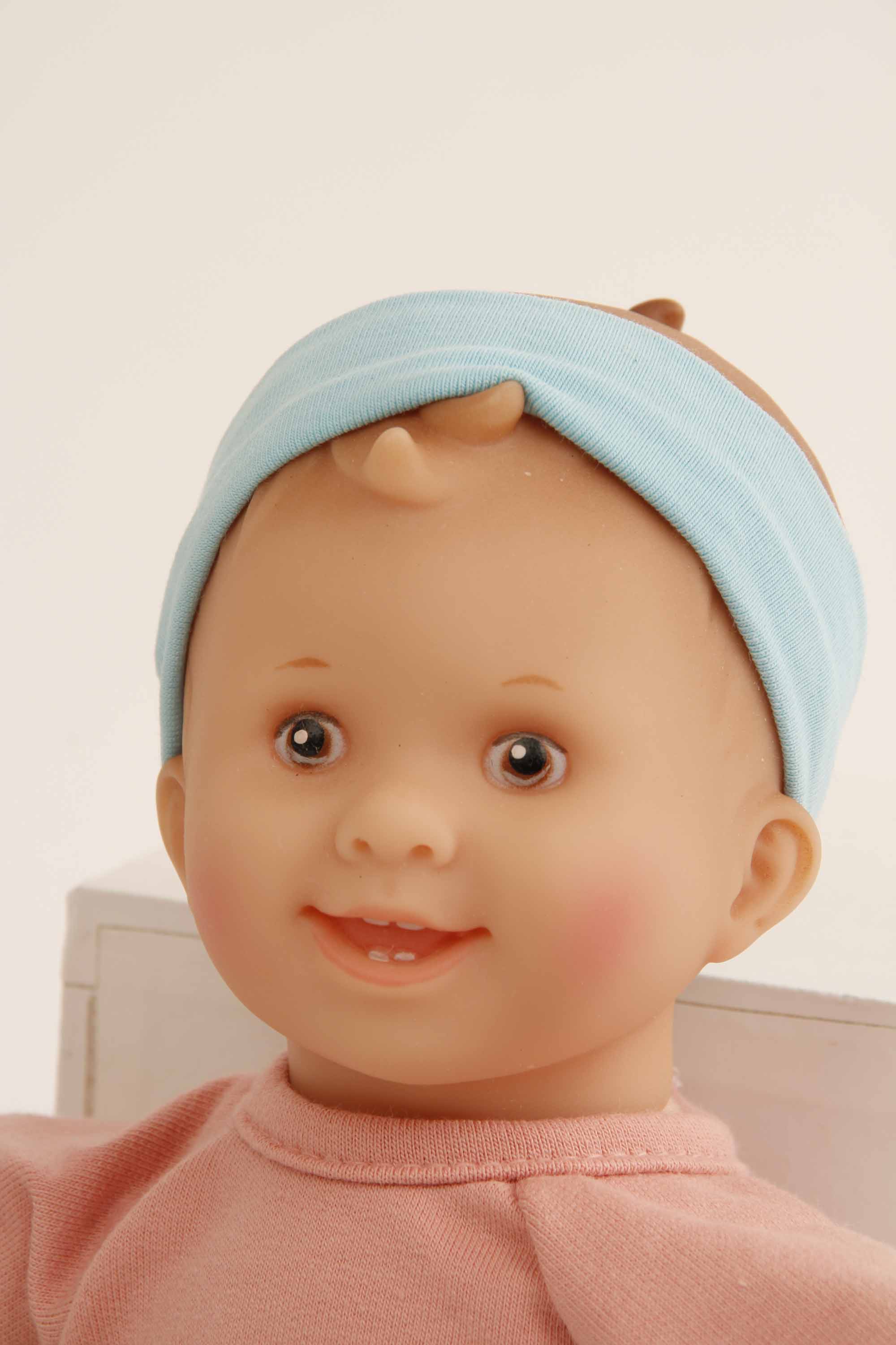 Löckchen ist ein neues kuschliges Stoffpüppchen für unsere Kleinsten ab 0 Jahre. Es ist 30 cm groß und hat gemalte braune Augen. Das niedliche, lustige Gesicht verbreitet im Handumdrehen gute Laune. Anschmiegsam mit weichem Stoffkörper ist es ideal zum Schmusen und hilft gerne beim Einschlafen. Der Kopf der Puppe ist aus Vinyl mit gemalten braunen Augen und gemalten Haaren, Löckchen ist in unserer eigenen Puppenmanufaktur in Rauenstein/Thüringen hergestellt. Die Spielkleidung in weiss/bleu und rose ist leicht an- und auszuziehen und ist per Hand waschbar bei 30° C.