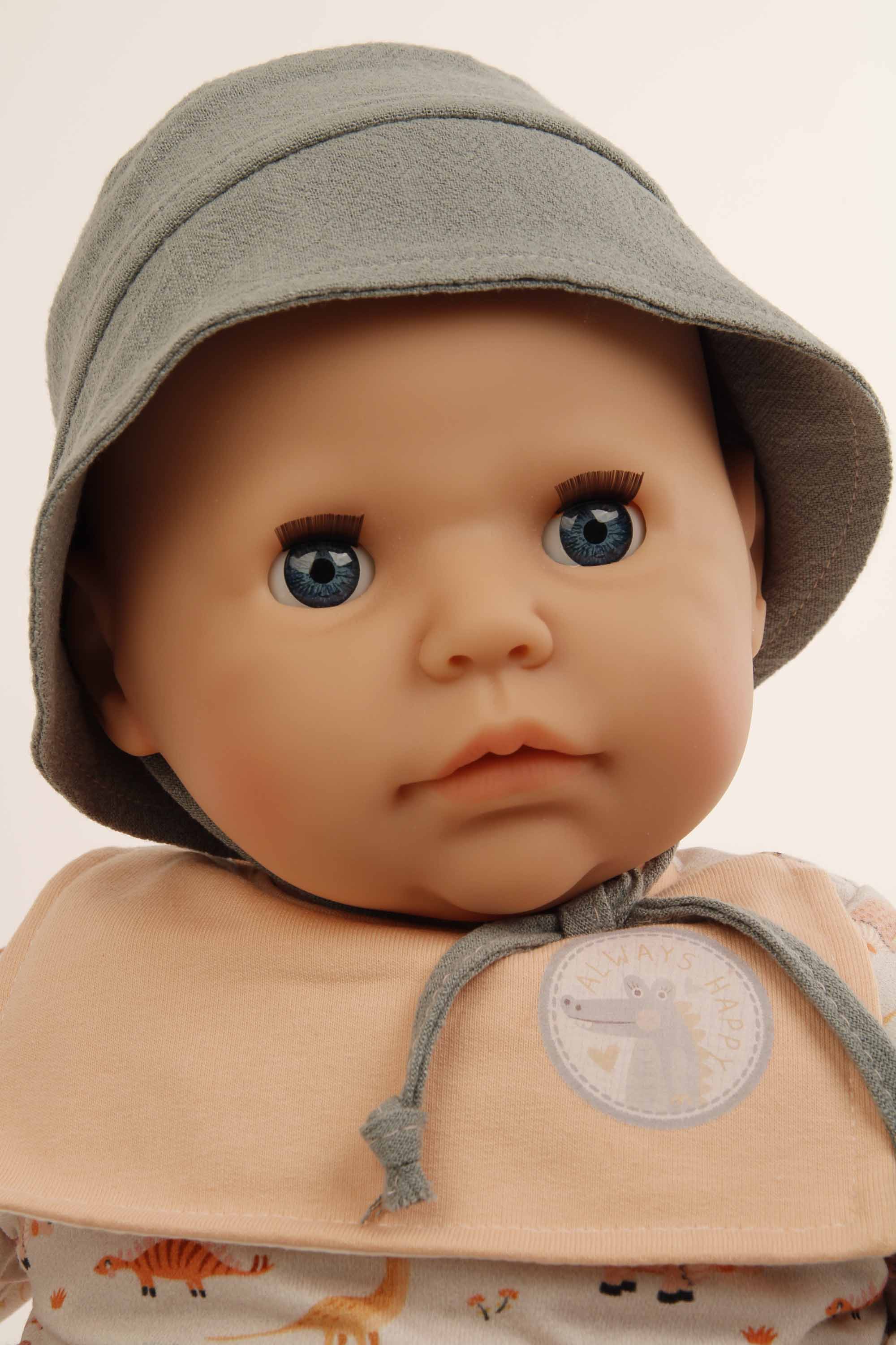 Produktinformationen "Baby Julchen 52 cm Malhaar, blaue Schlafaugen, Kleidung Dino"