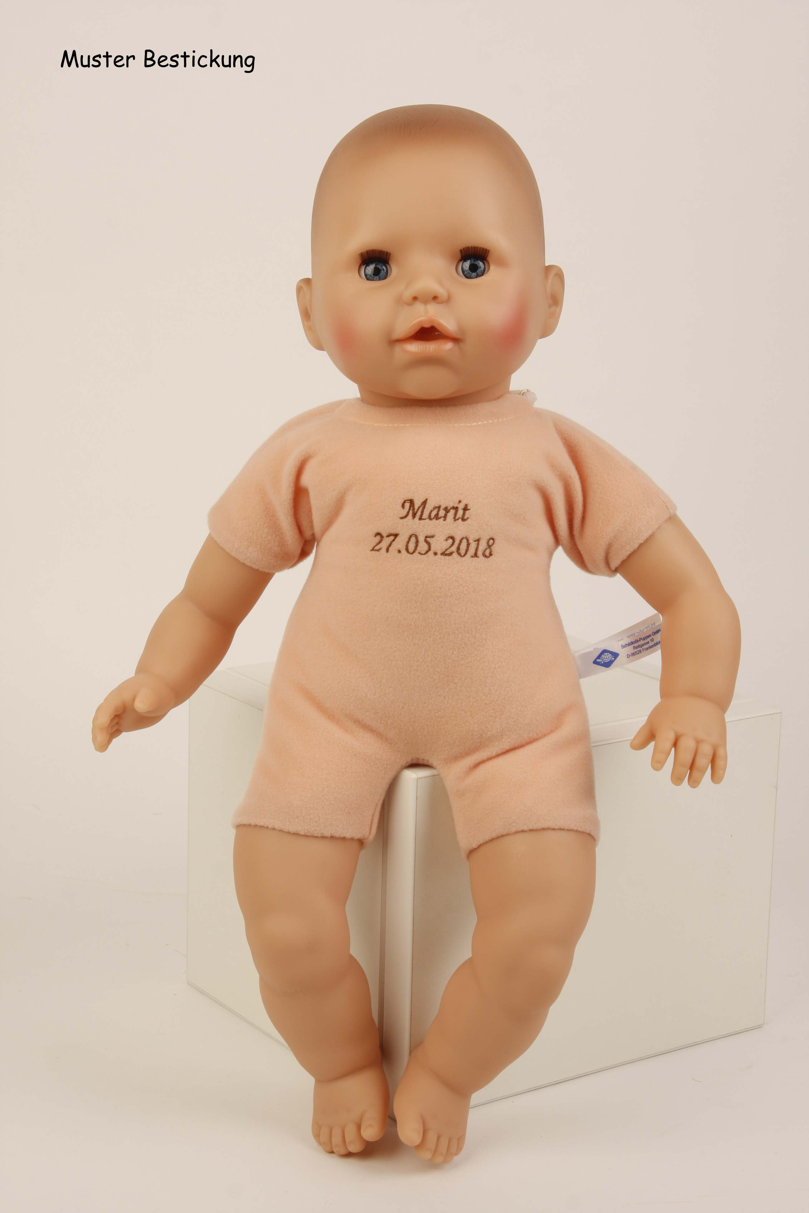 STICKEREI: Als besonderen Service bieten wir an, eine individuelle Widmung (z.B. Name und Geburtsdatum der Puppenmutti) mit einem kleinen Aufpreis auf den Puppenbauch zu sticken. Wenn Sie eine ganz persönliche Puppe für Ihr Kind möchten, dann geben Sie Ihre Wunschbestickung oben in die dafür vorgesehenen Felder ein.